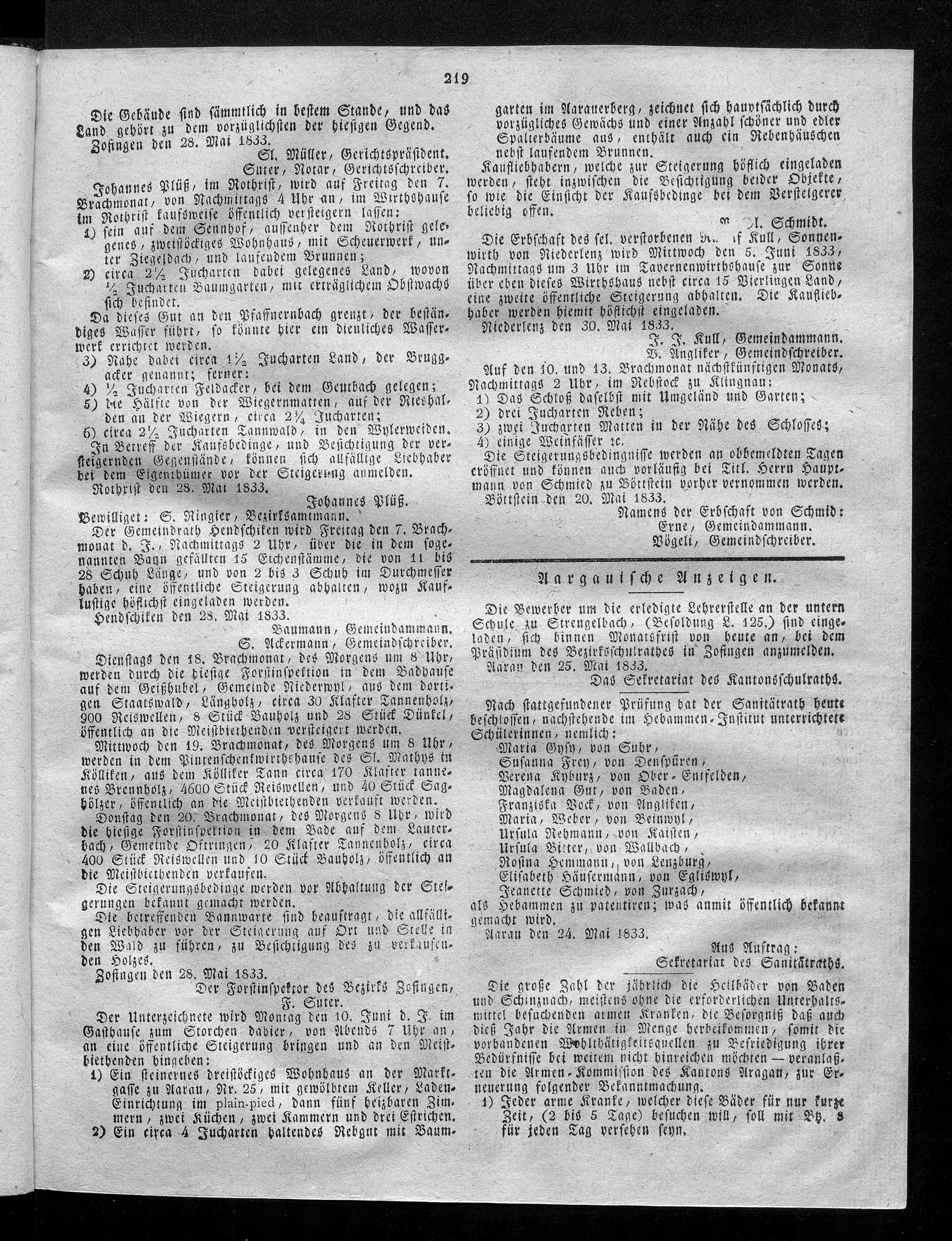 Hochobrigkeitlich privilegirtes Aargauisches Intelligenz-Blatt