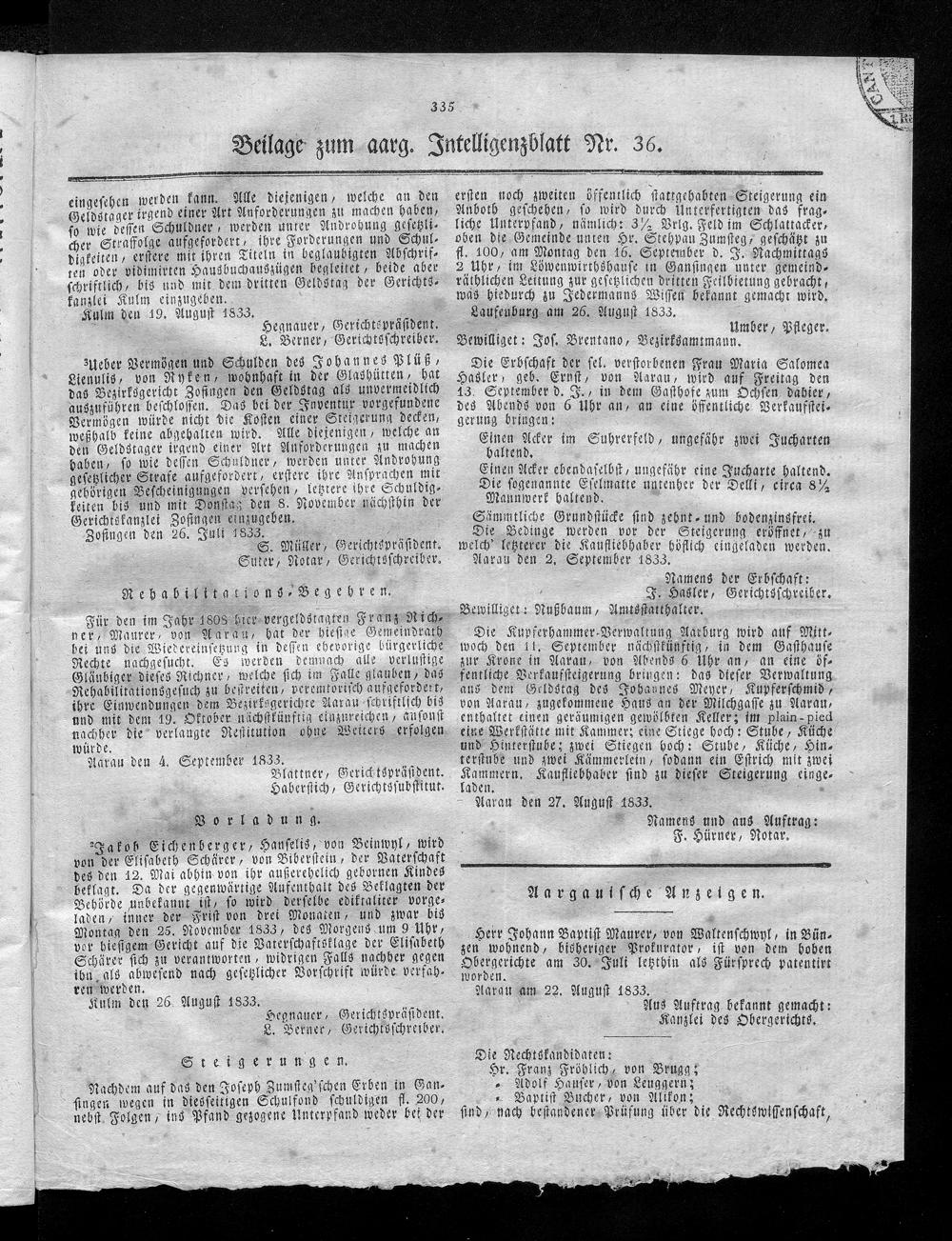 Hochobrigkeitlich privilegirtes Aargauisches Intelligenz-Blatt
