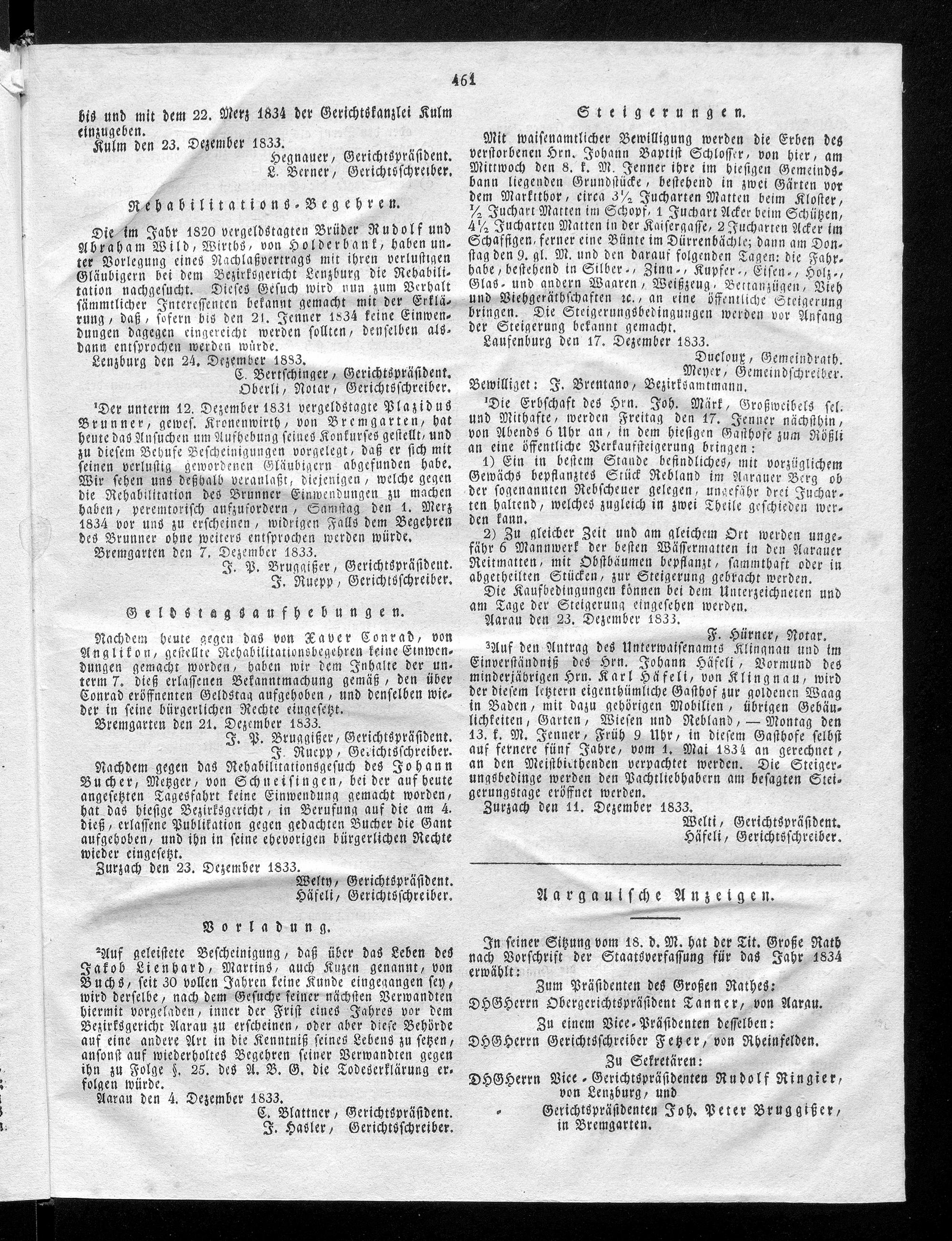 Hochobrigkeitlich privilegirtes Aargauisches Intelligenz-Blatt