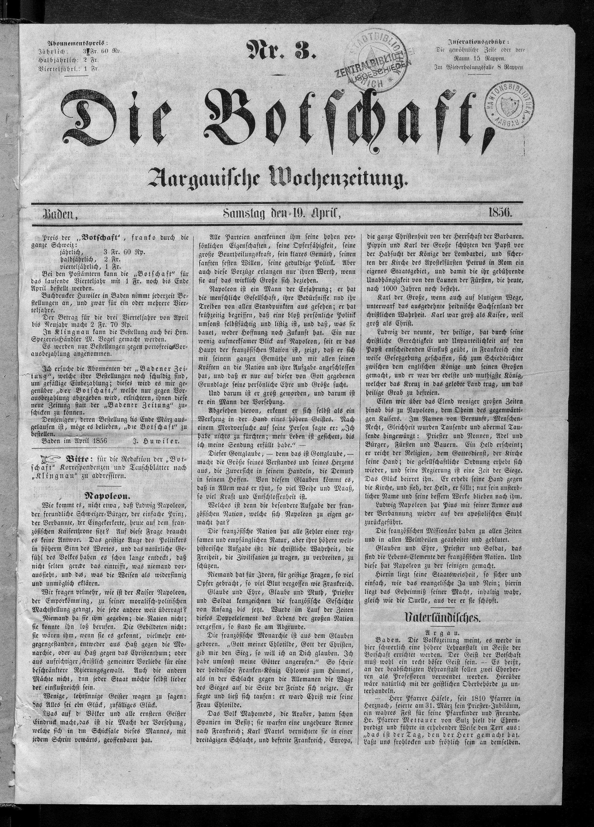Die Botschaft. 1856-9999