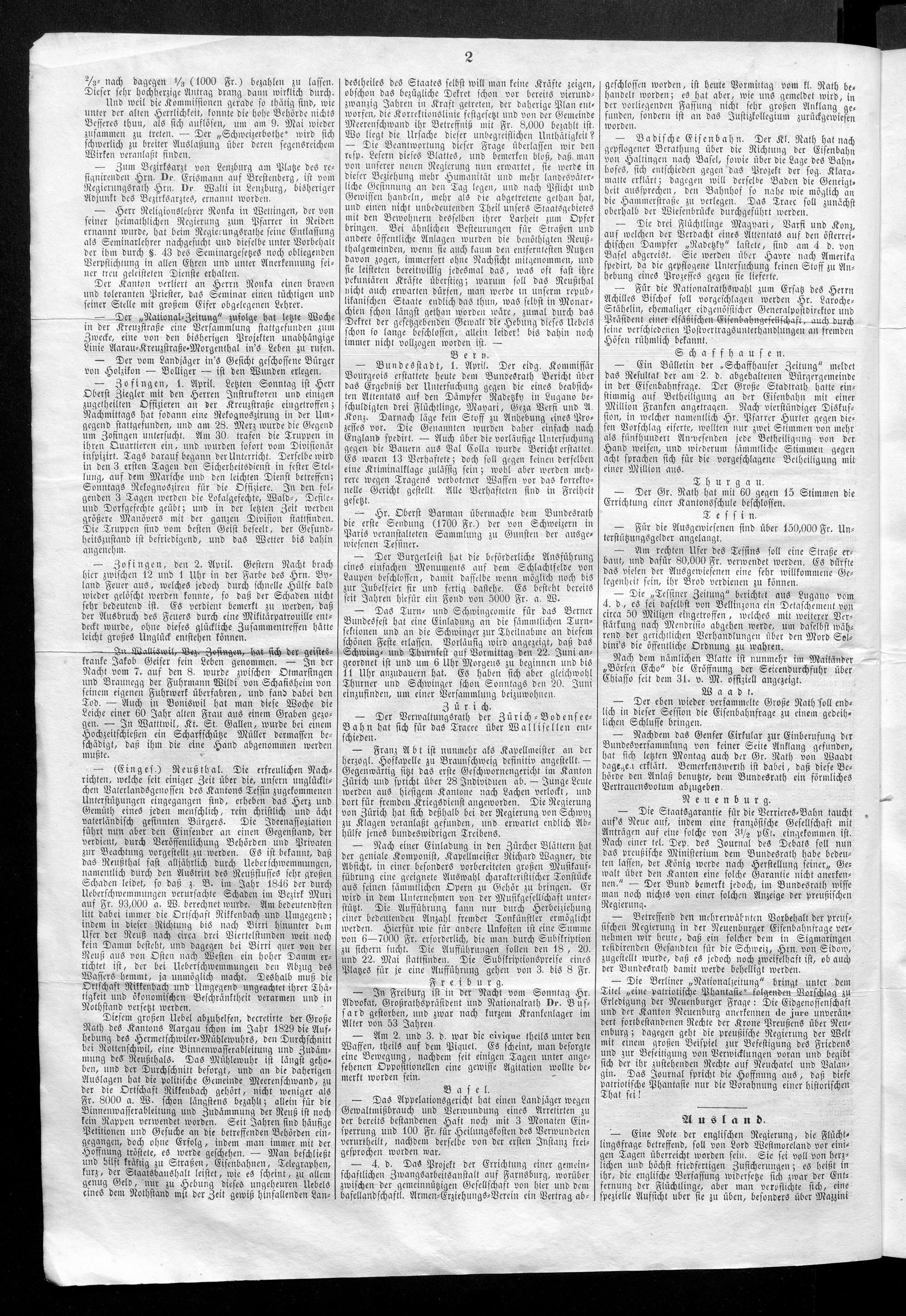 Schweizerische Volks-Zeitung. 1851-1857