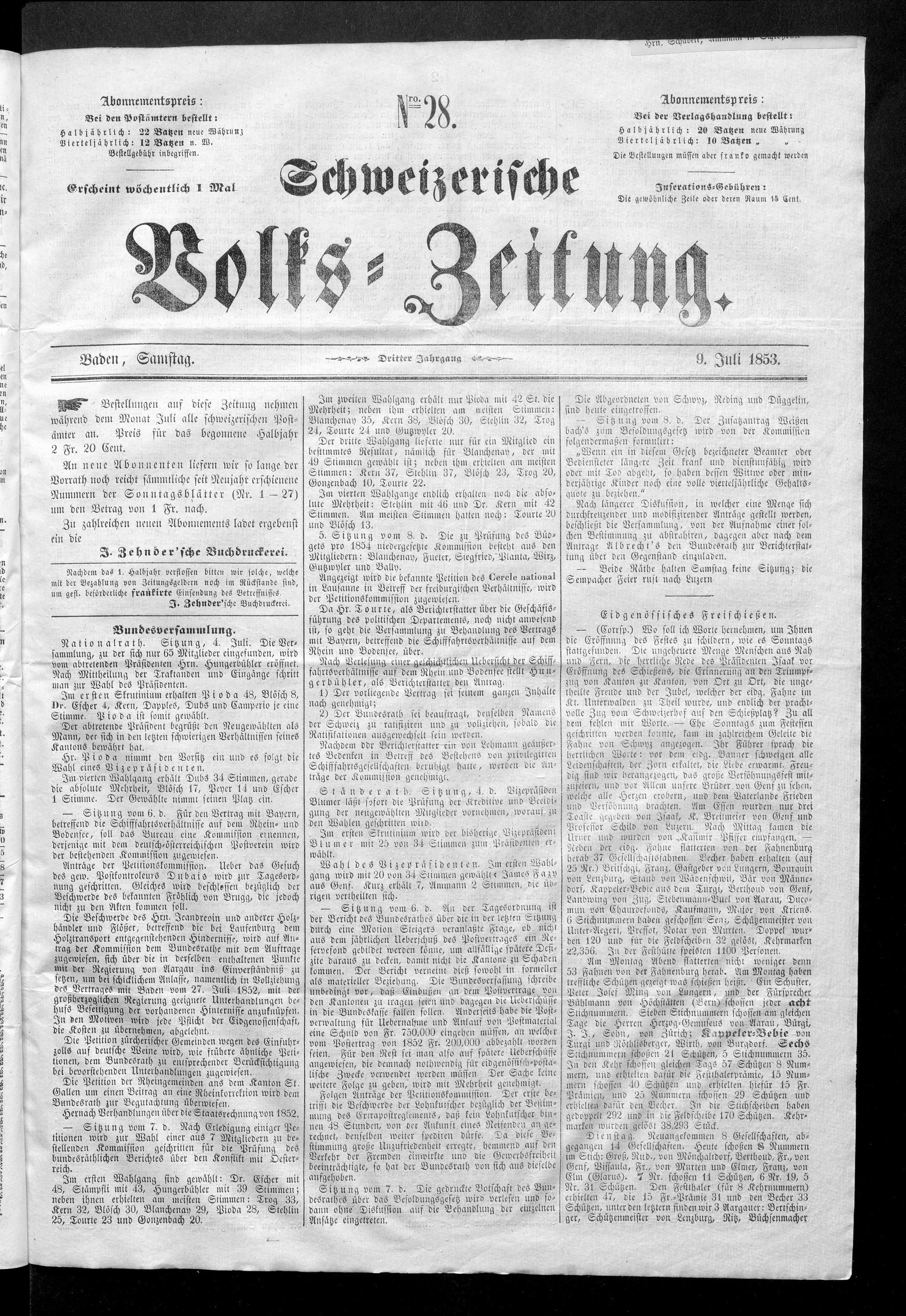 Schweizerische Volks-Zeitung. 1851-1857