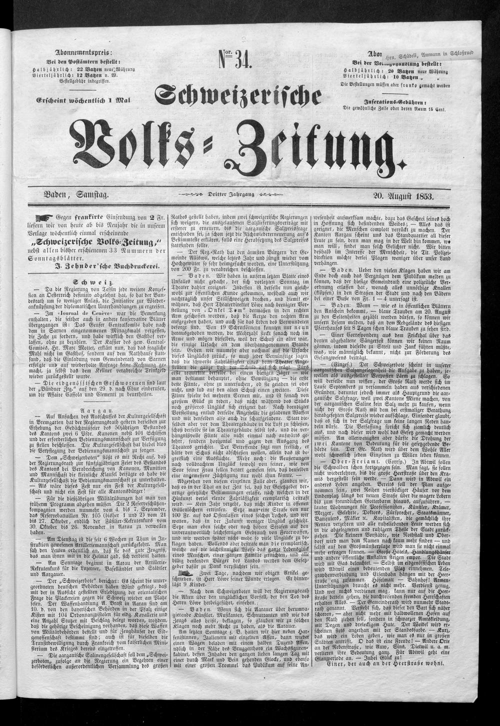 Schweizerische Volks-Zeitung. 1851-1857