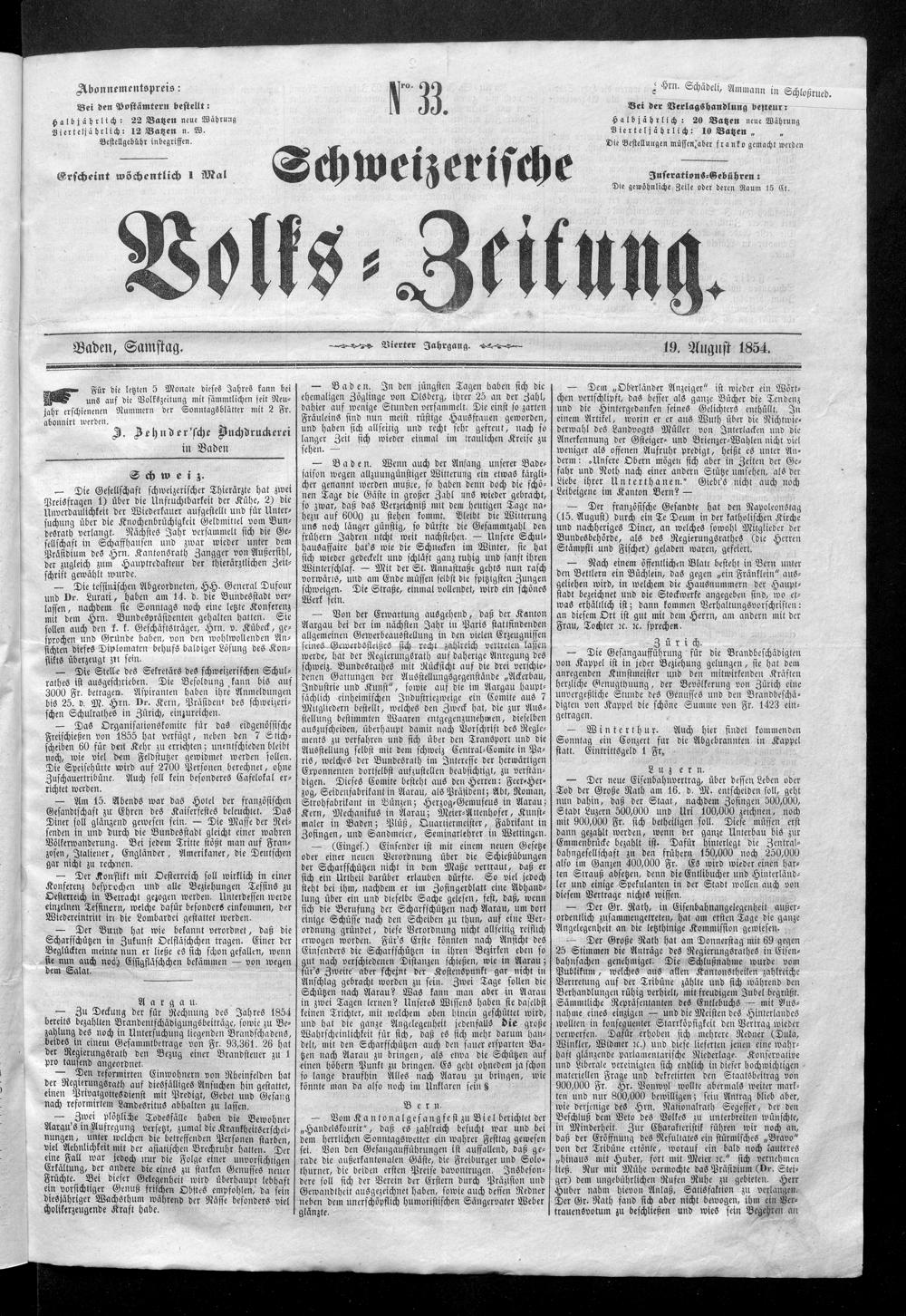 Schweizerische Volks-Zeitung. 1851-1857