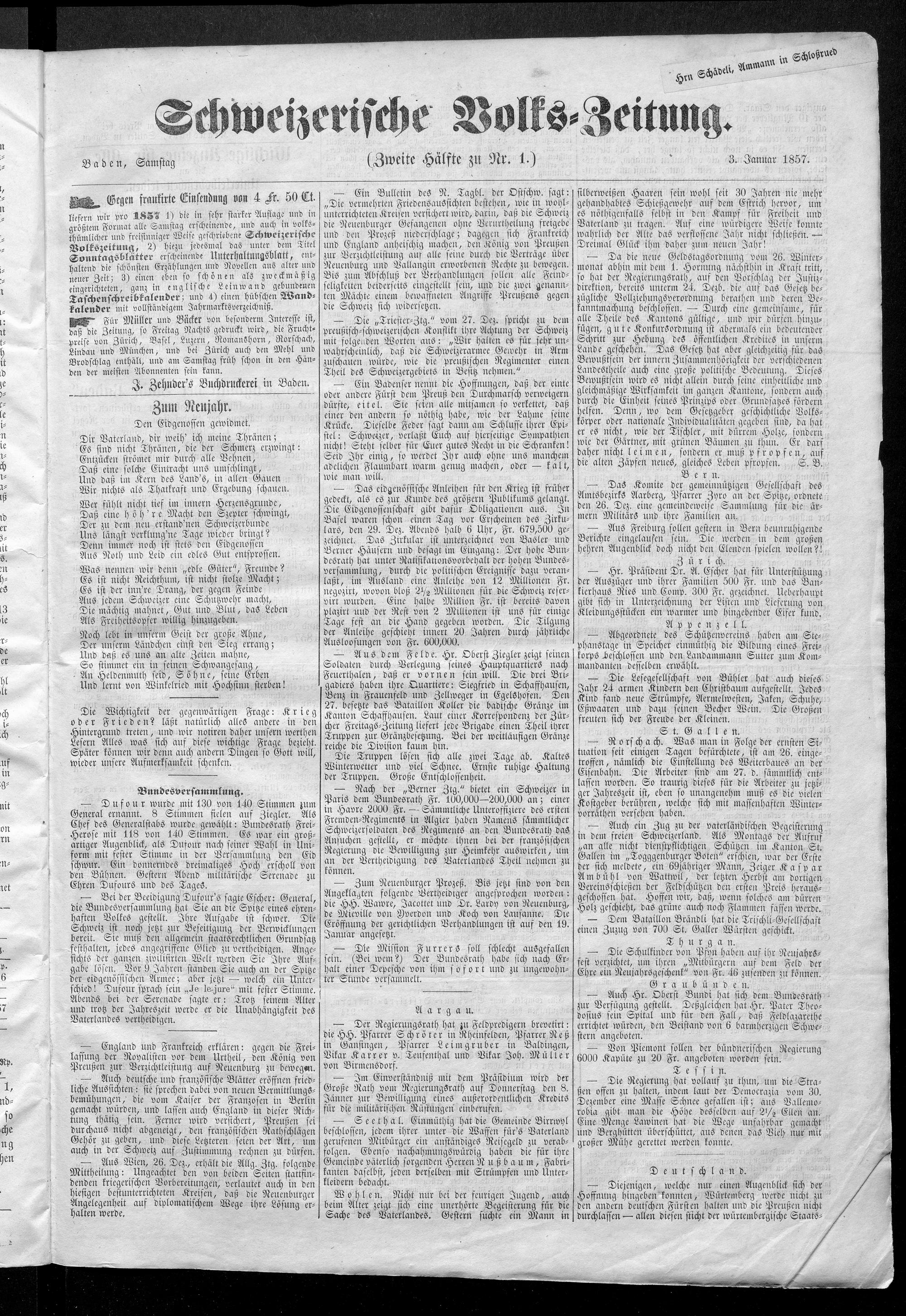Schweizerische Volks-Zeitung. 1851-1857