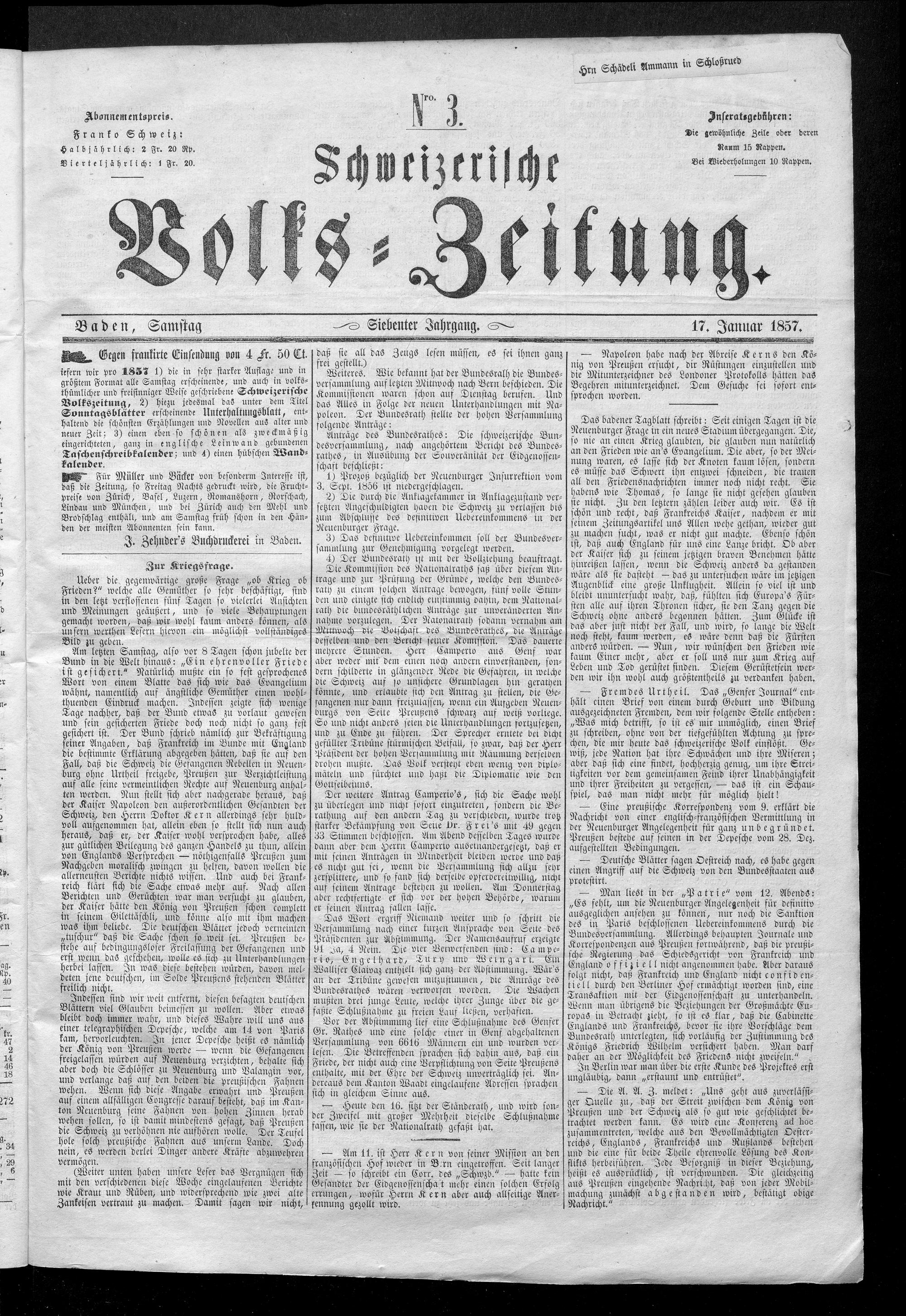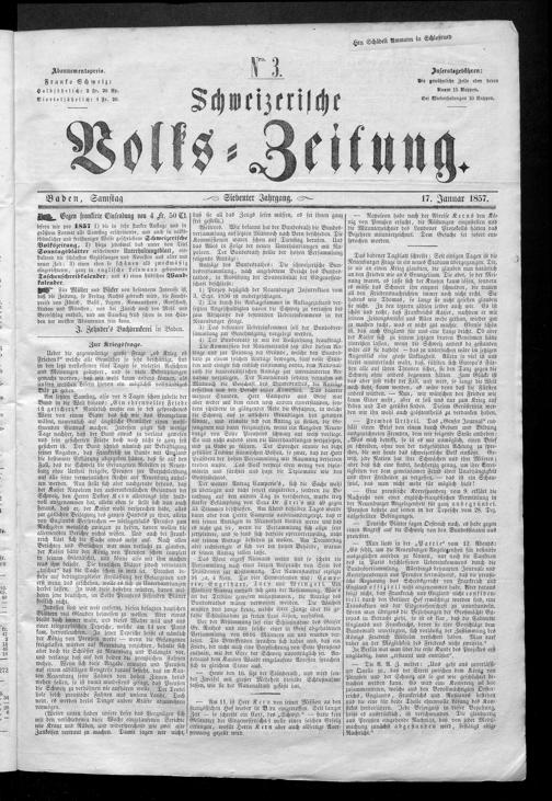 Schweizerische Volks-Zeitung. 1851-1857
