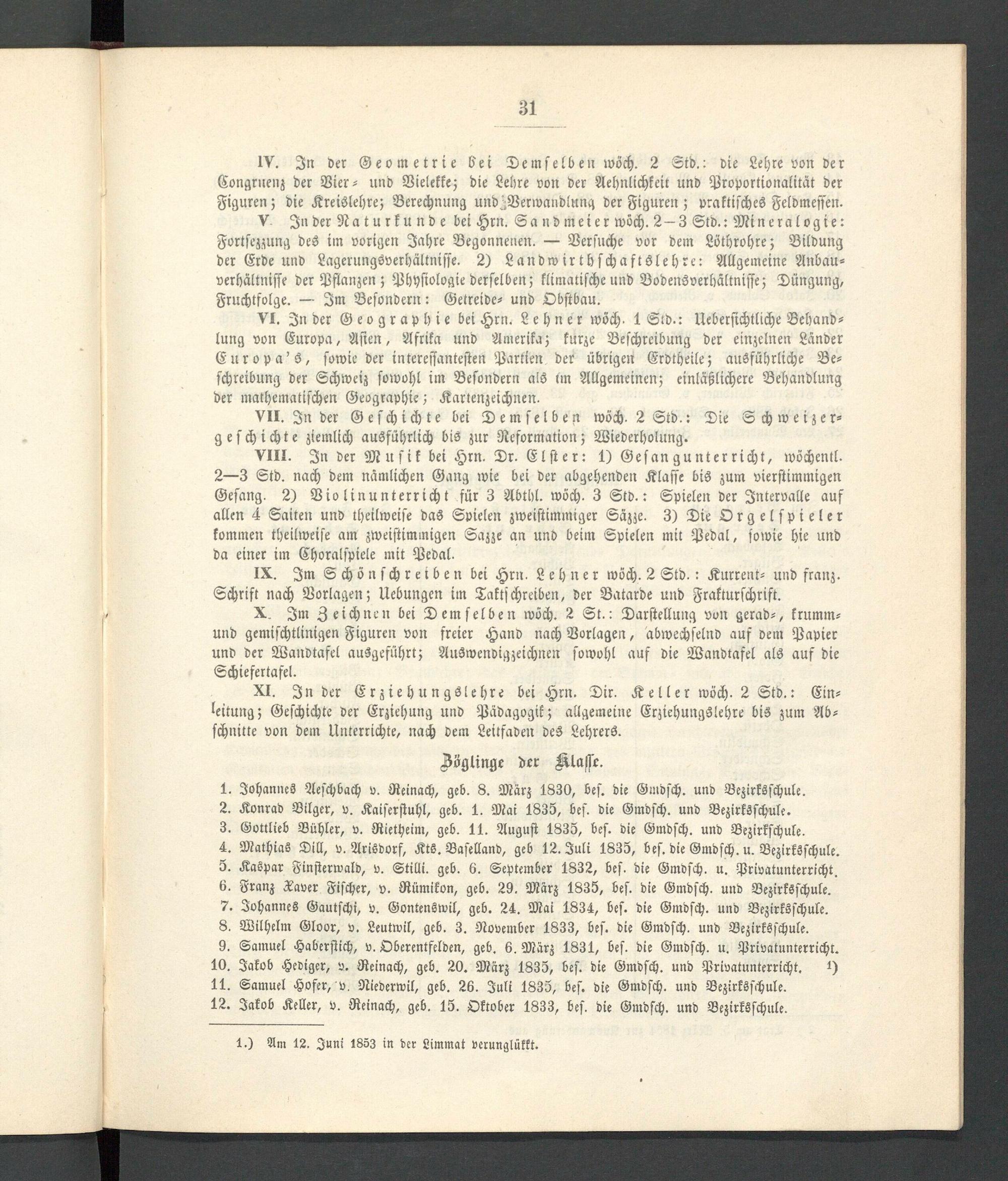 Programm des Aargauischen Lehrerseminars in Wettingen