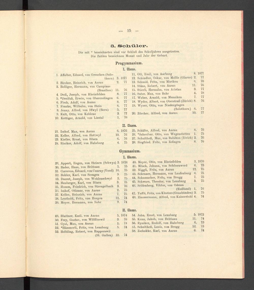 Programm der Aargauischen Kantonsschule