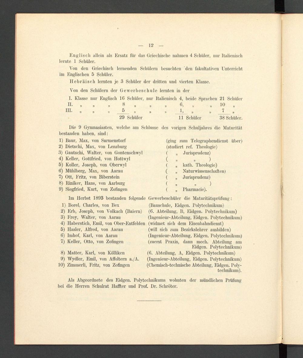 Programm der Aargauischen Kantonsschule