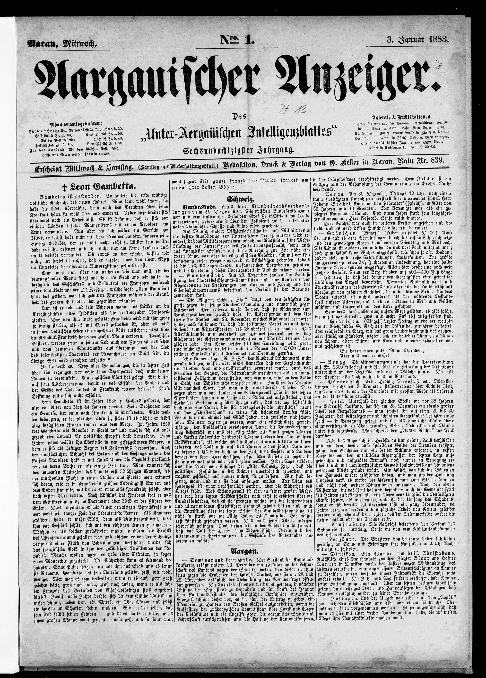 Aargauischer Anzeiger. 1797-1918