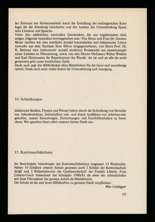 Jahresberichte der Kantonsschulen