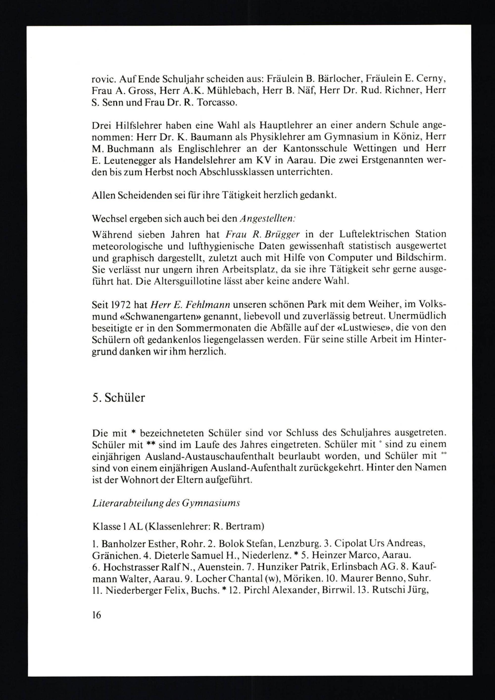 Jahresbericht der Alten Kantonsschule Aarau