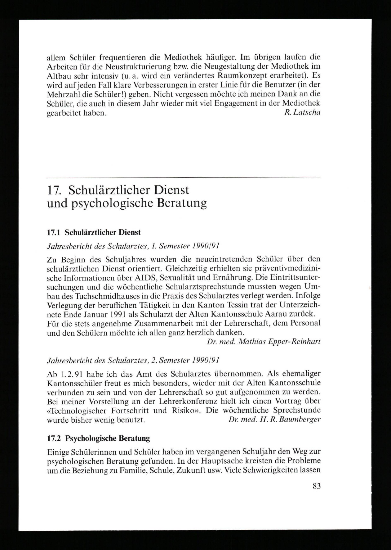 Jahresberichte der Kantonsschulen