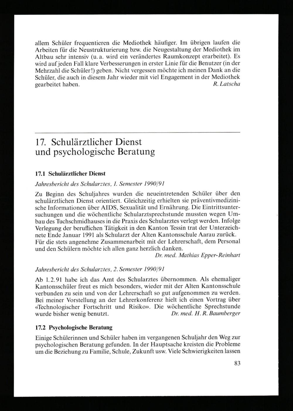 Jahresbericht der Alten Kantonsschule Aarau