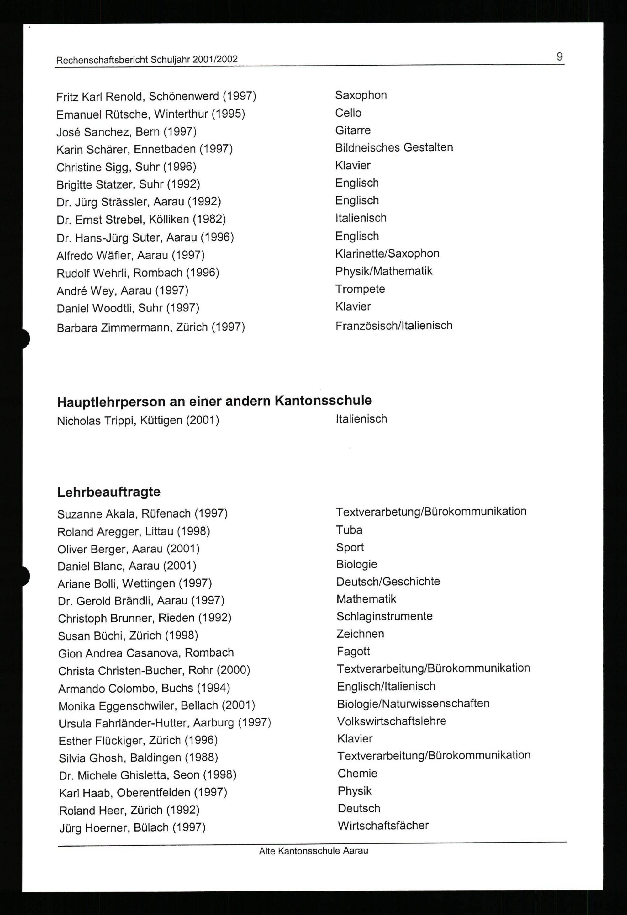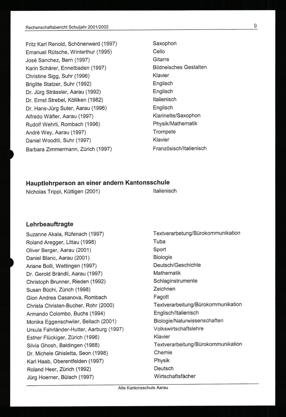 Rechenschaftsbericht Schuljahr ...