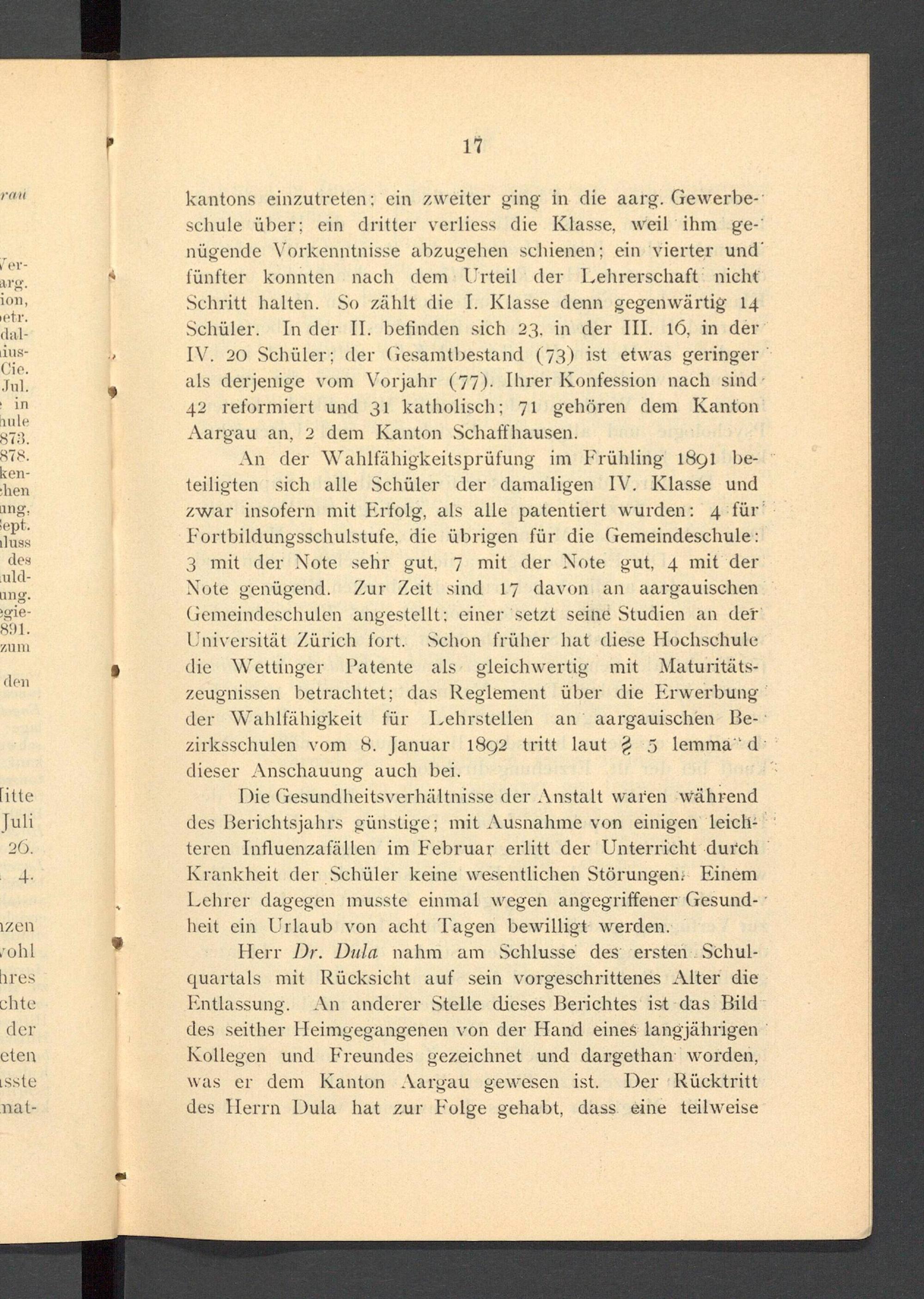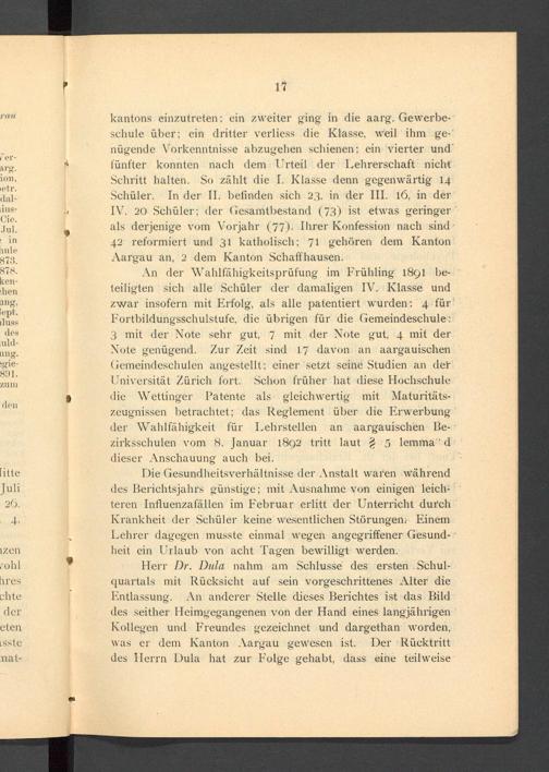 Jahresbericht über das aargauische Lehrerseminar Wettingen