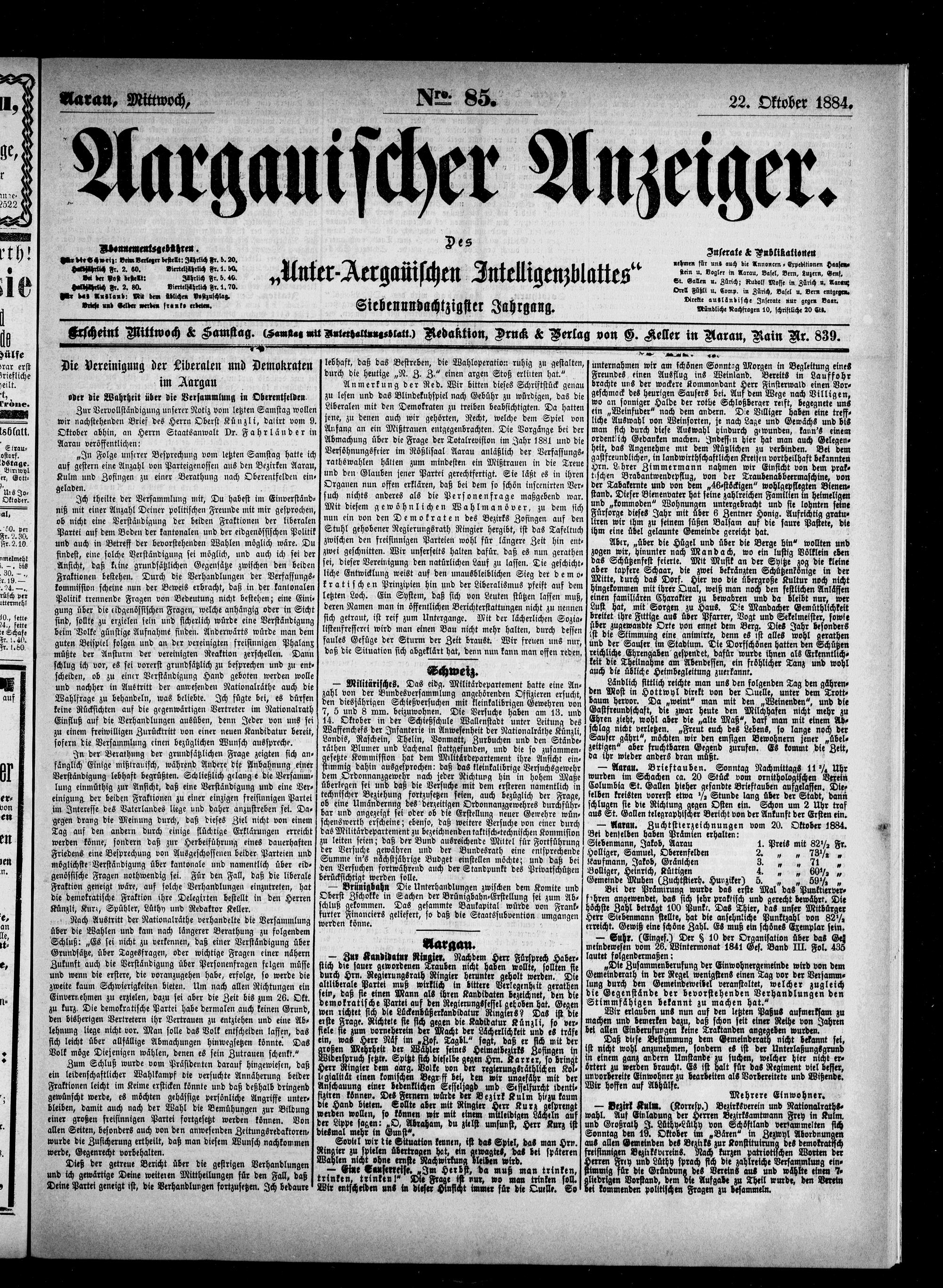Aargauischer Anzeiger. 1797-1918