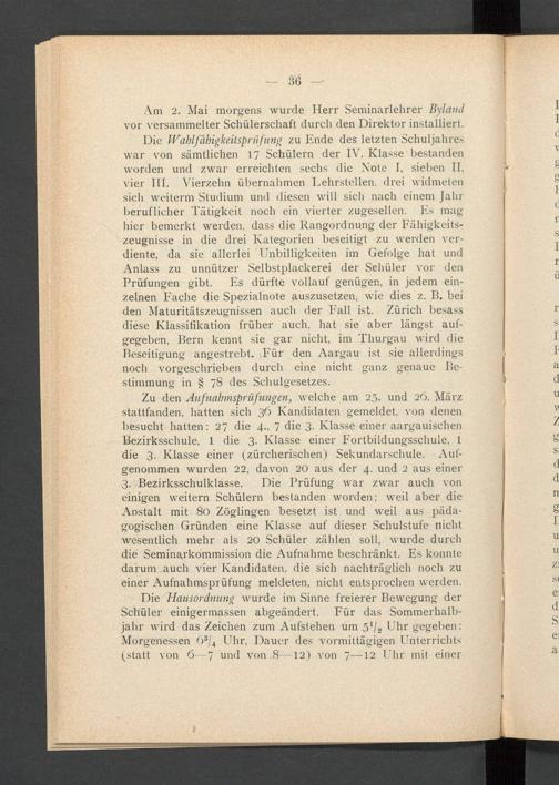 Jahresbericht über das aargauische Lehrerseminar Wettingen