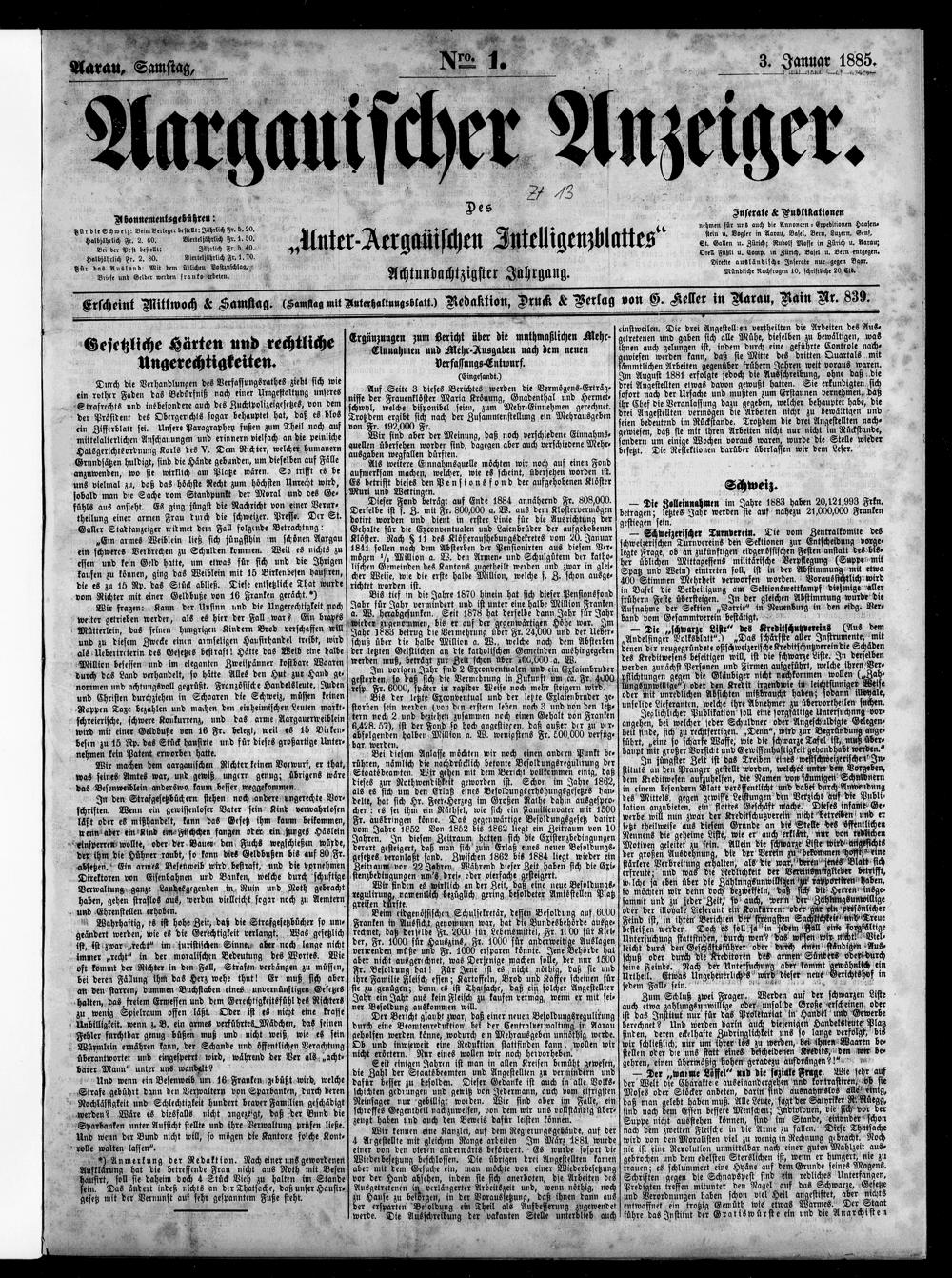 Aargauischer Anzeiger. 1797-1918