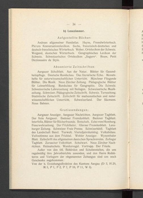 Jahresbericht über das aargauische Lehrerseminar Wettingen