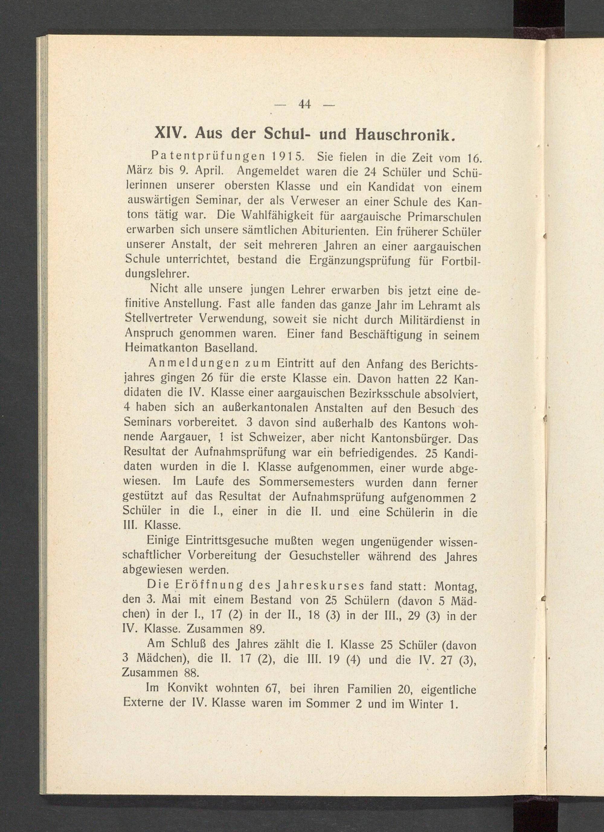 Jahresbericht über das aargauische Lehrerseminar Wettingen