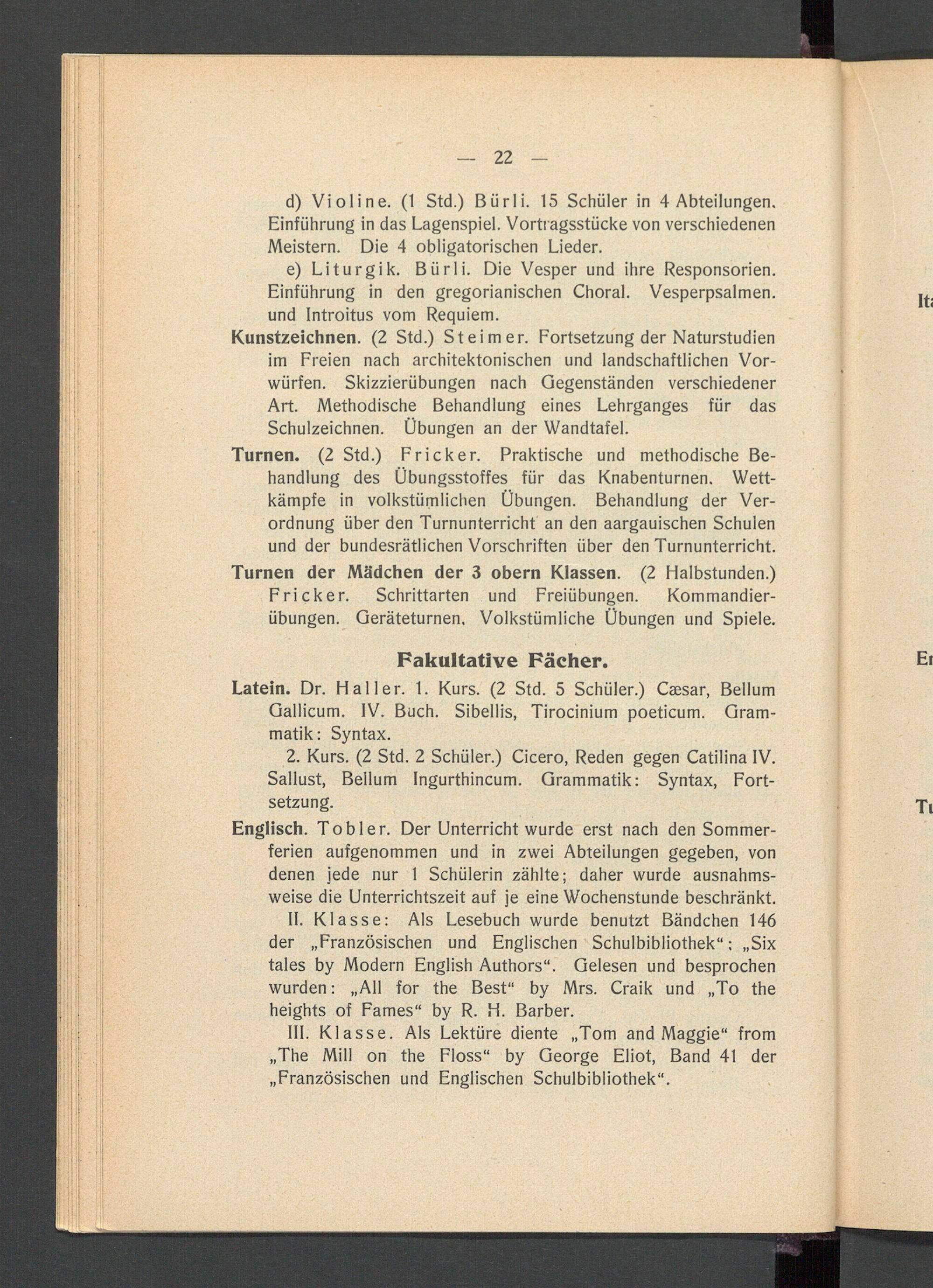 Jahresbericht über das aargauische Lehrerseminar Wettingen