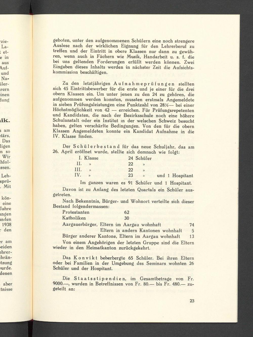 Jahresbericht über das aargauische Lehrerseminar Wettingen