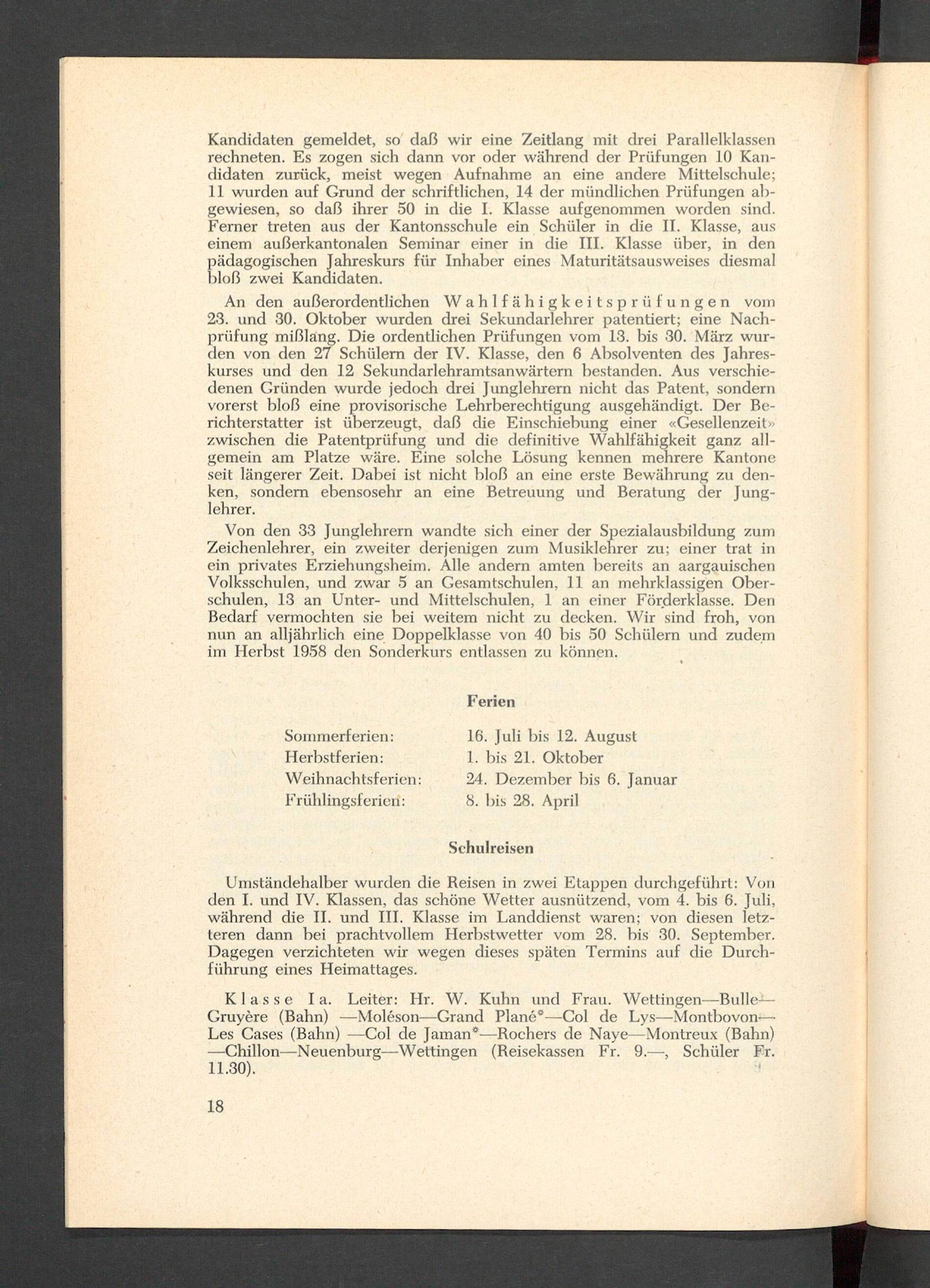 Jahresbericht über das aargauische Lehrerseminar Wettingen