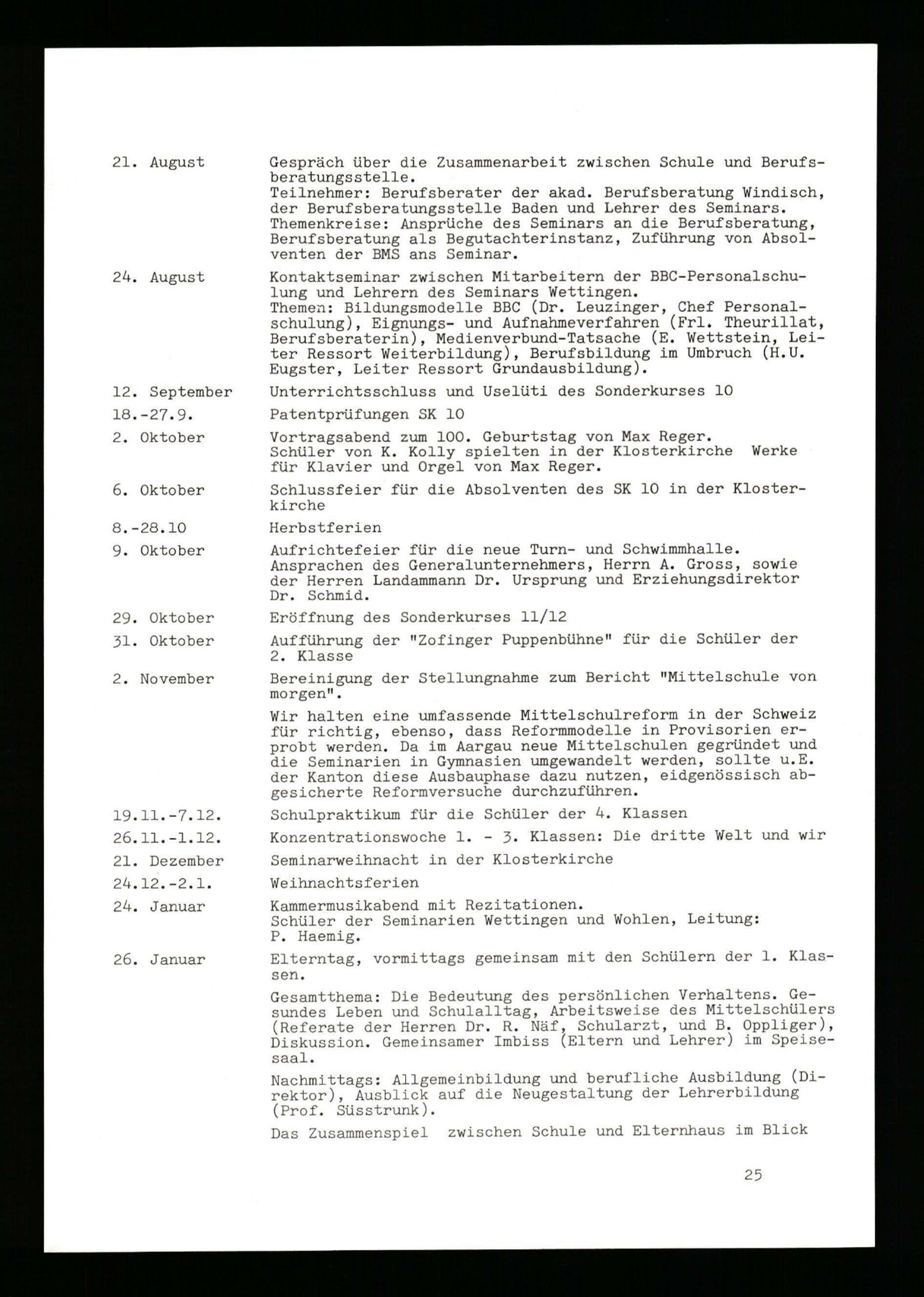 Jahresbericht über das aargauische Lehrerseminar Wettingen