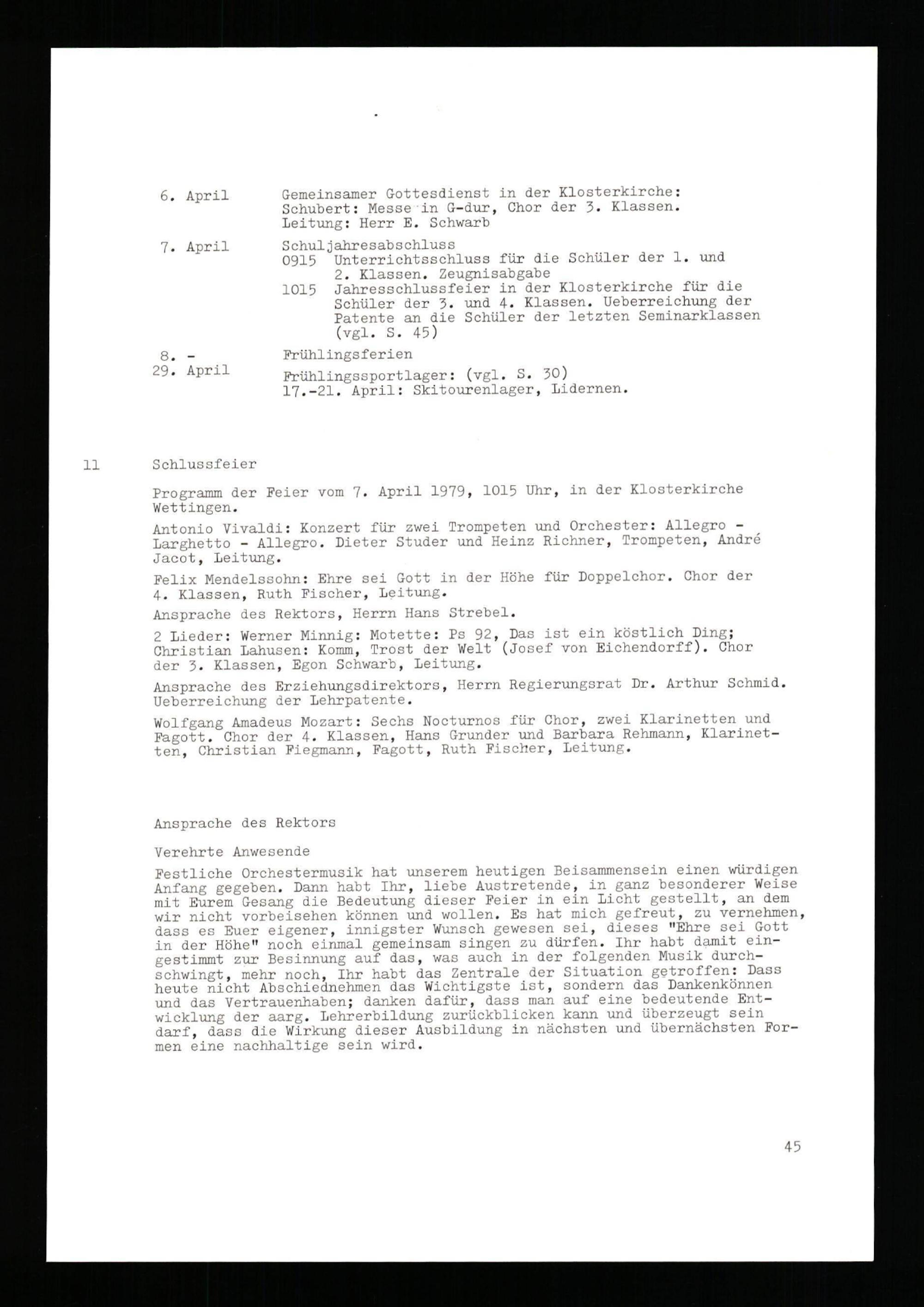 Jahresbericht über das aargauische Lehrerseminar Wettingen