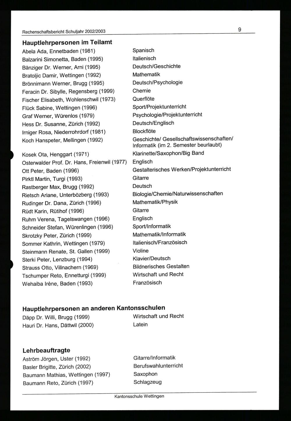 Jahresberichte der Kantonsschulen