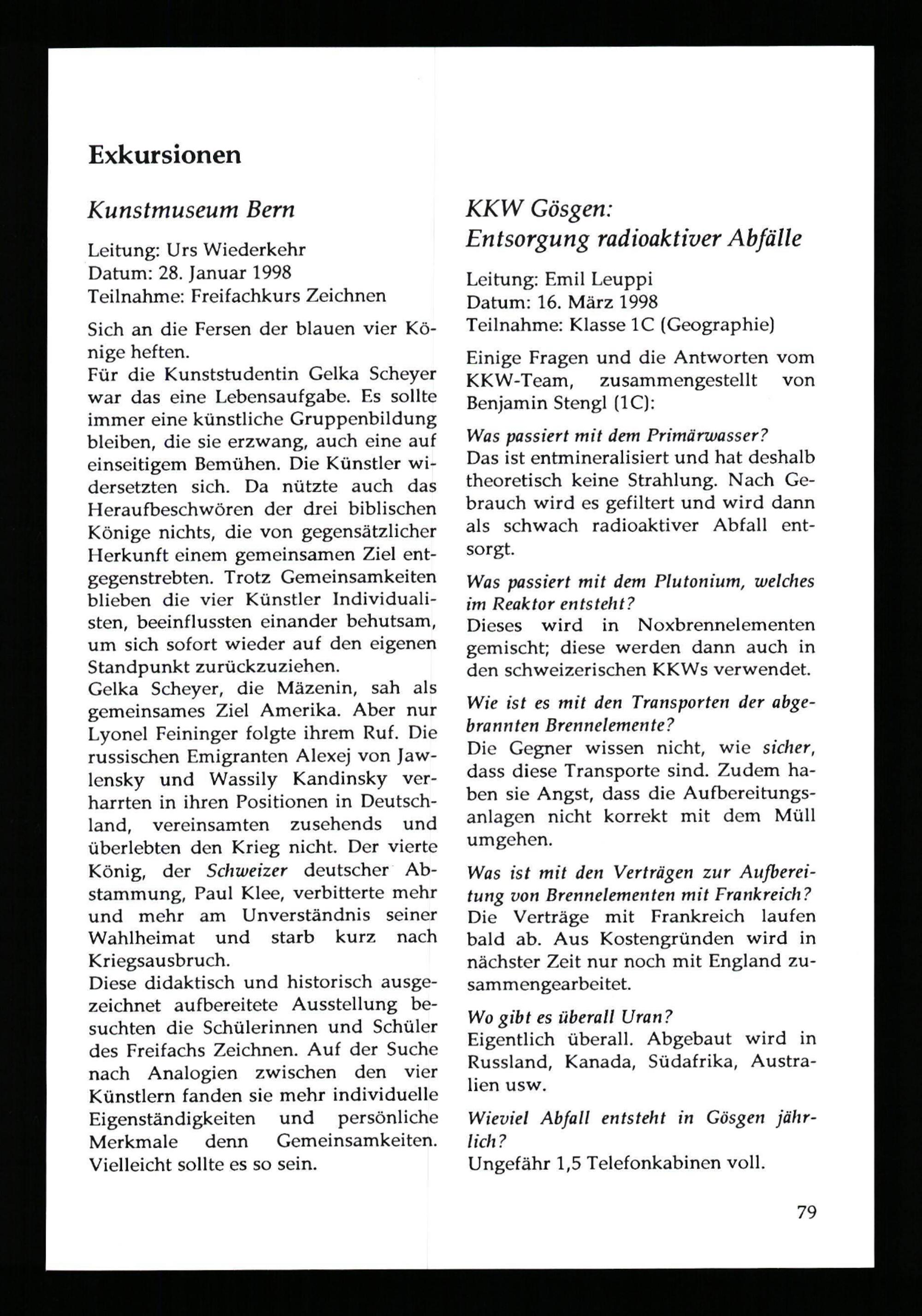 Jahresberichte der Kantonsschulen