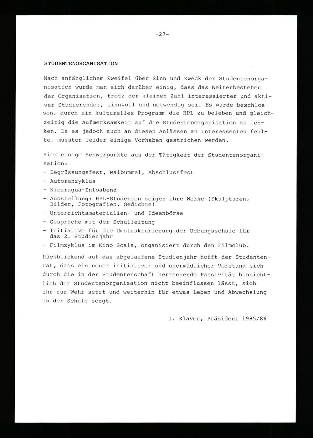 Jahresbericht über das Schuljahr ...