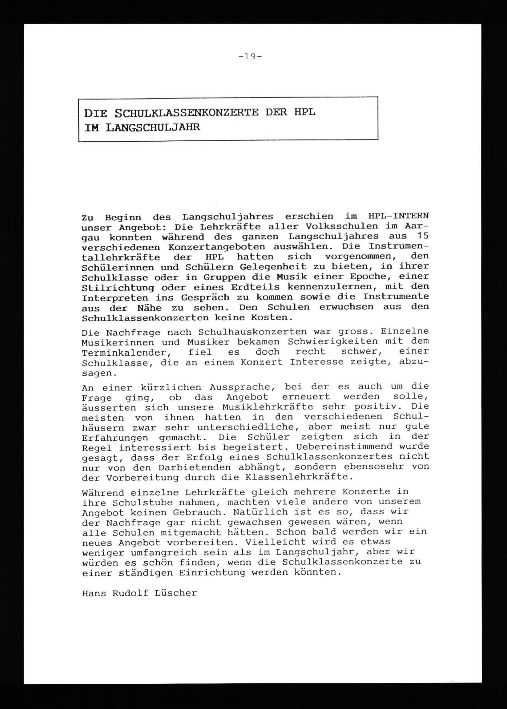Jahresbericht über das Schuljahr ...