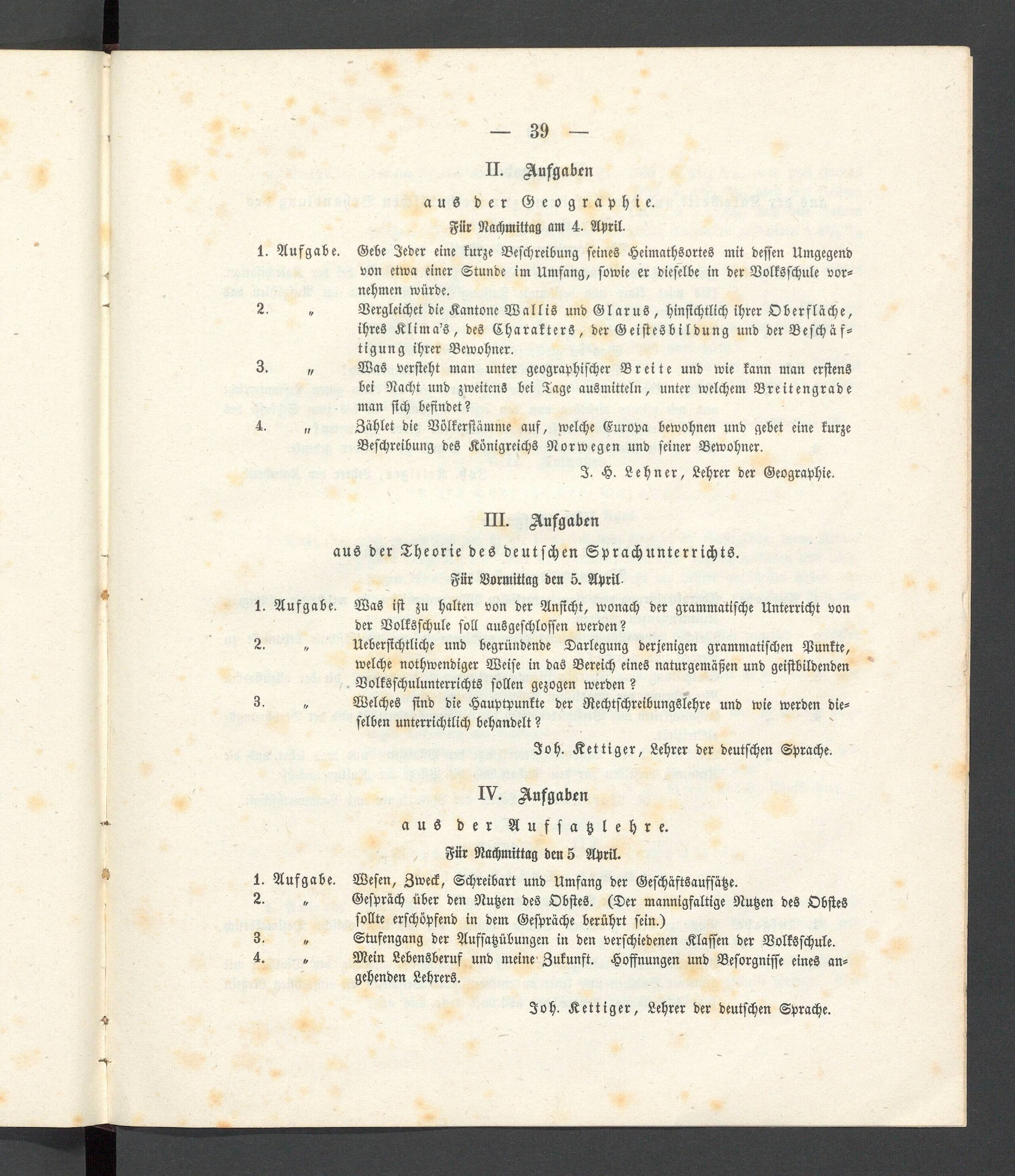 Programm des Aargauischen Lehrerseminars in Wettingen