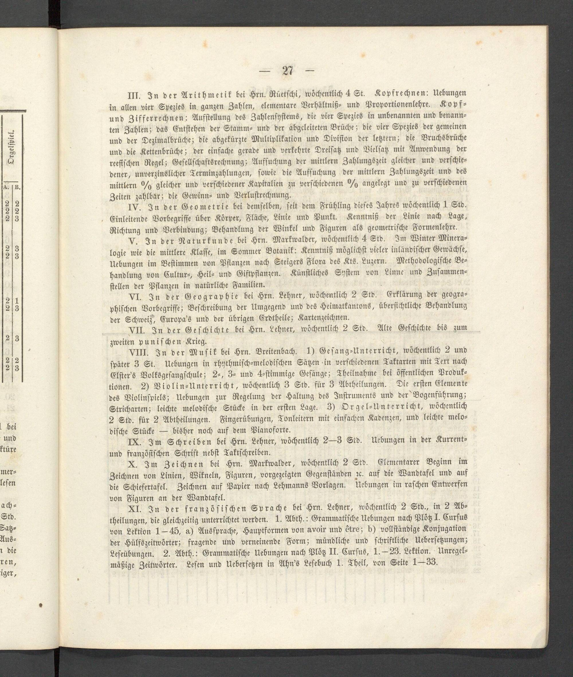Programm des Aargauischen Lehrerseminars in Wettingen