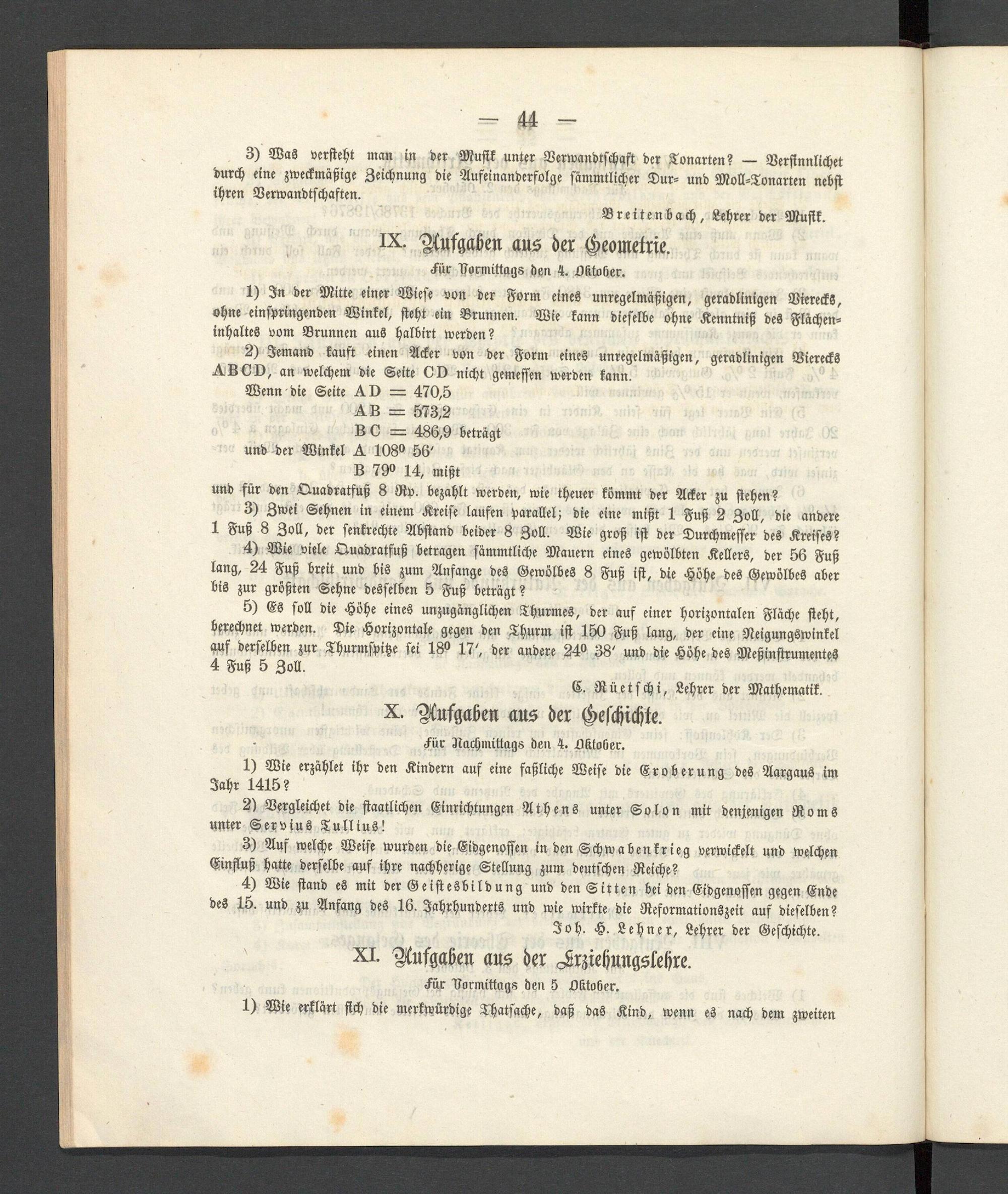 Programm des Aargauischen Lehrerseminars in Wettingen