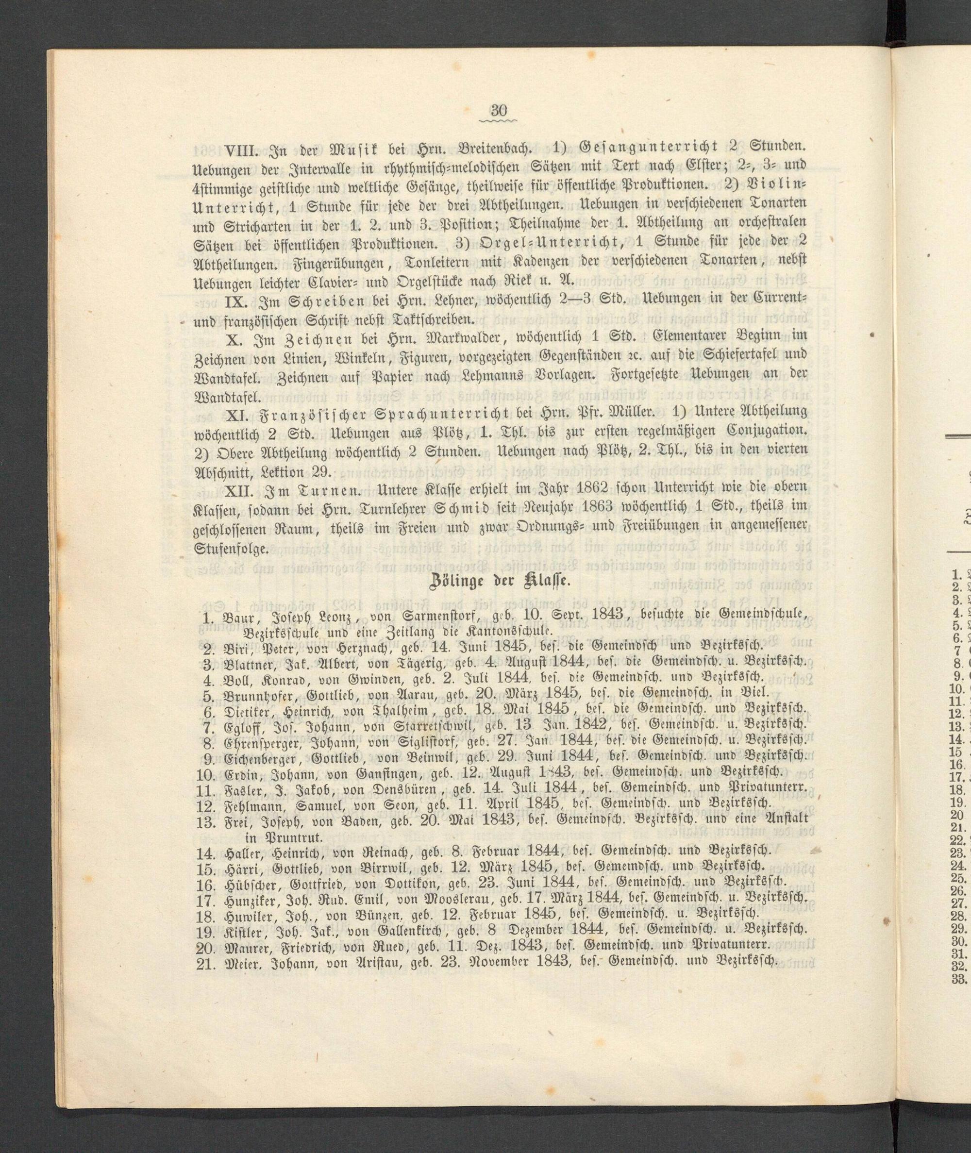 Programm des Aargauischen Lehrerseminars in Wettingen