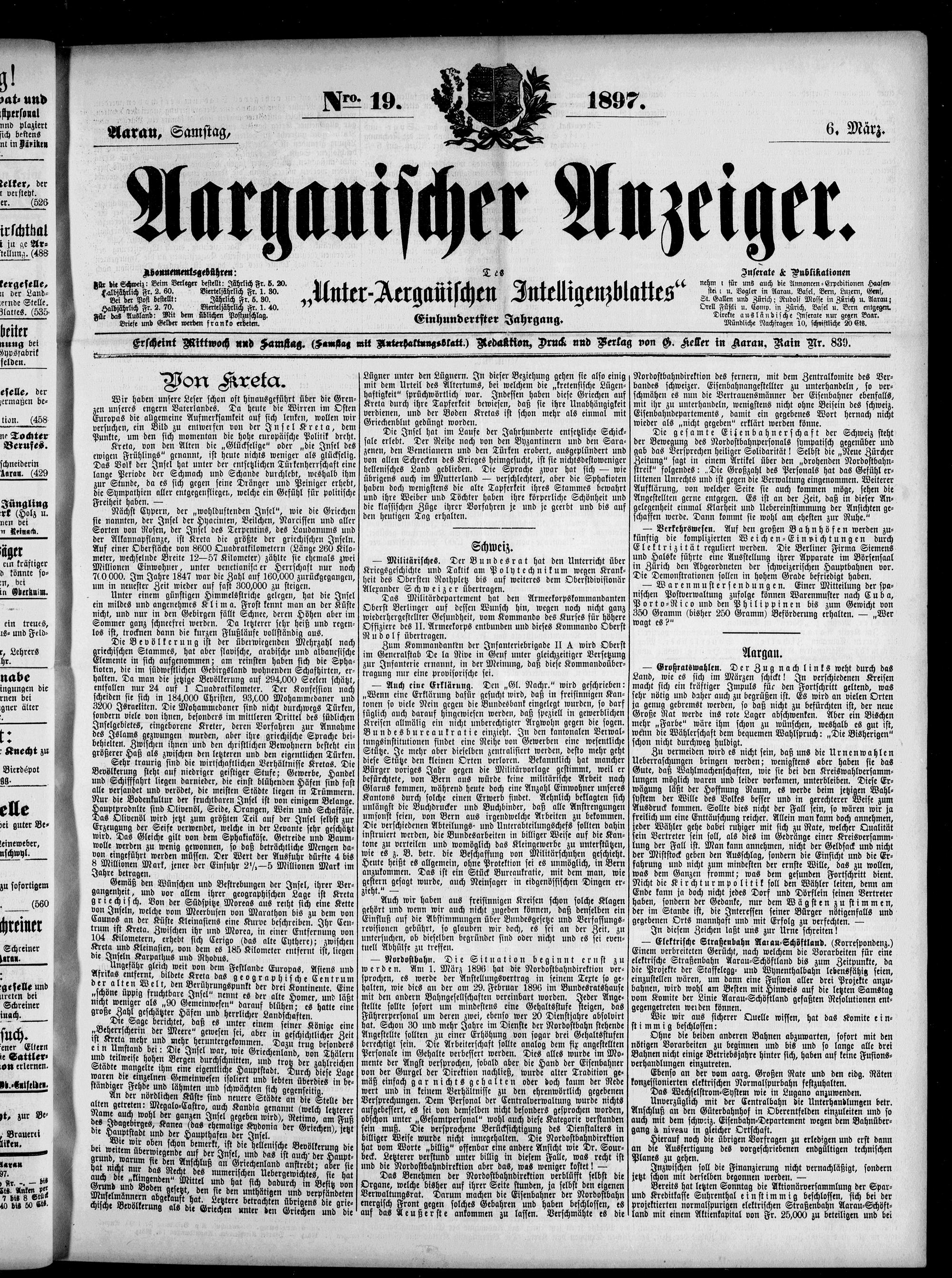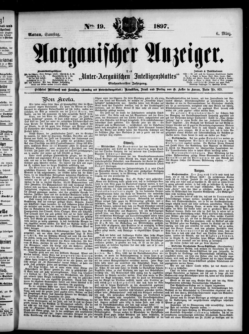 Aargauischer Anzeiger. 1797-1918