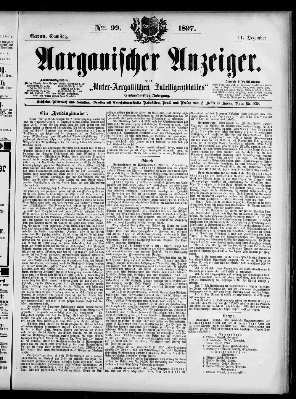 Aargauischer Anzeiger. 1797-1918