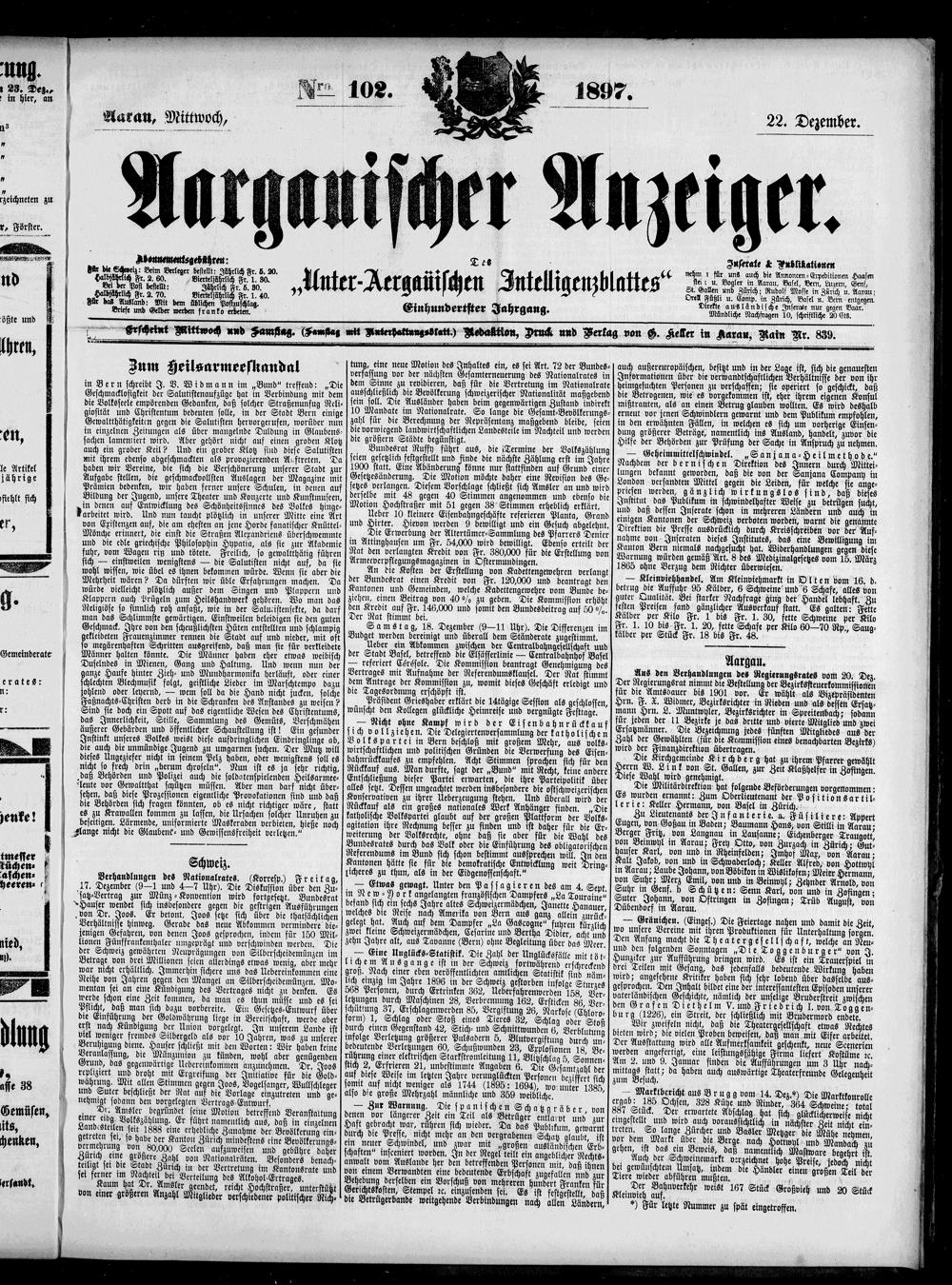 Aargauischer Anzeiger. 1797-1918