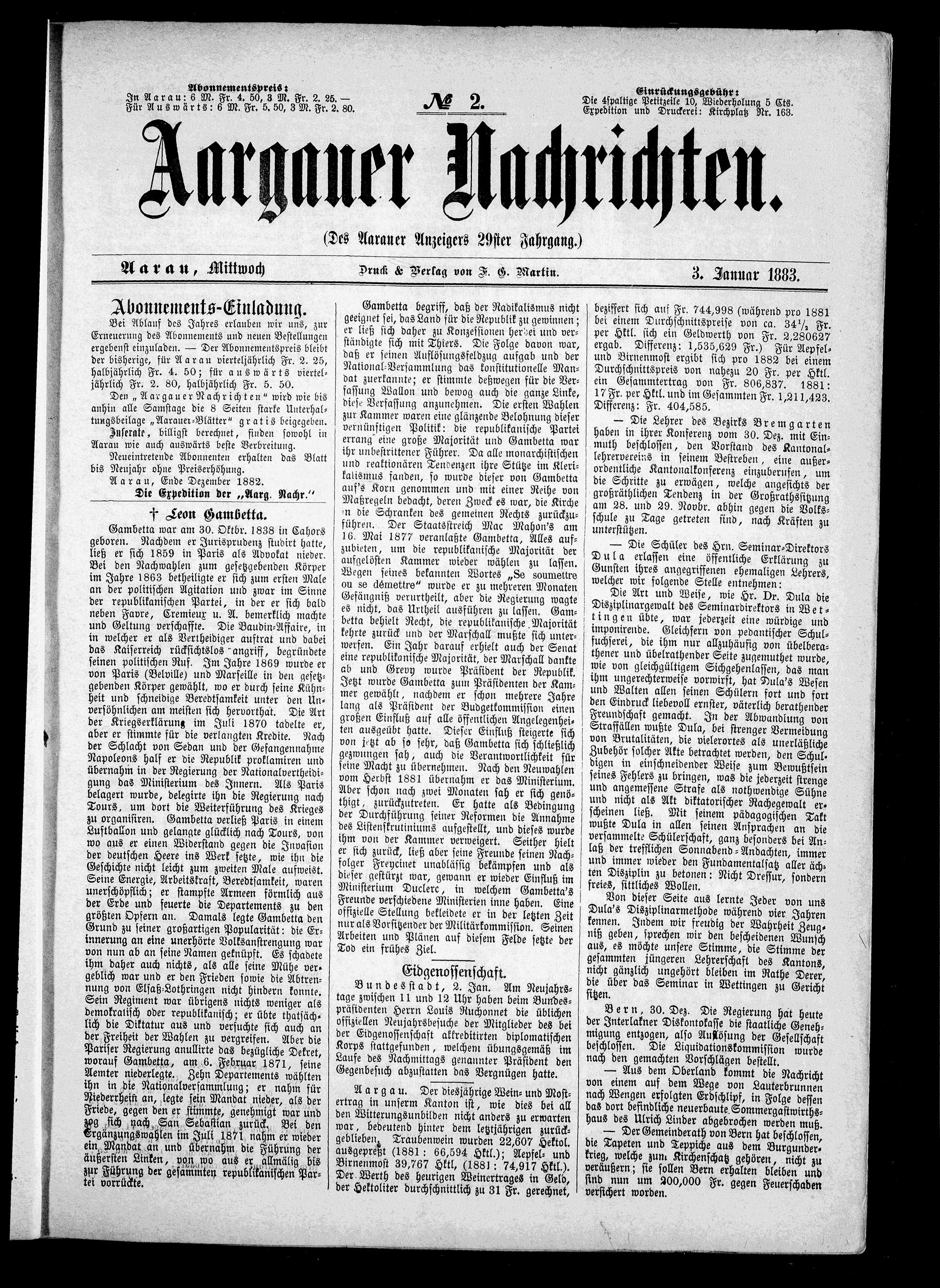 Aargauer Nachrichten : Freisinning-demokratisches Organ des Kantons Aargau