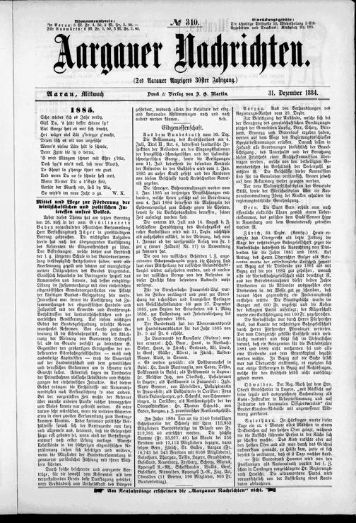 Aargauer Nachrichten : Freisinning-demokratisches Organ des Kantons Aargau