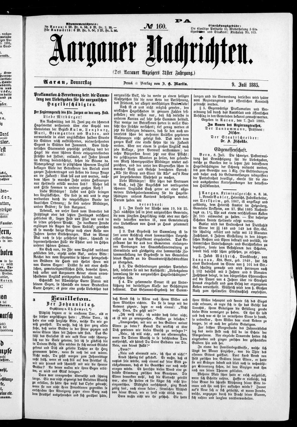 Aargauer Nachrichten : Freisinning-demokratisches Organ des Kantons Aargau