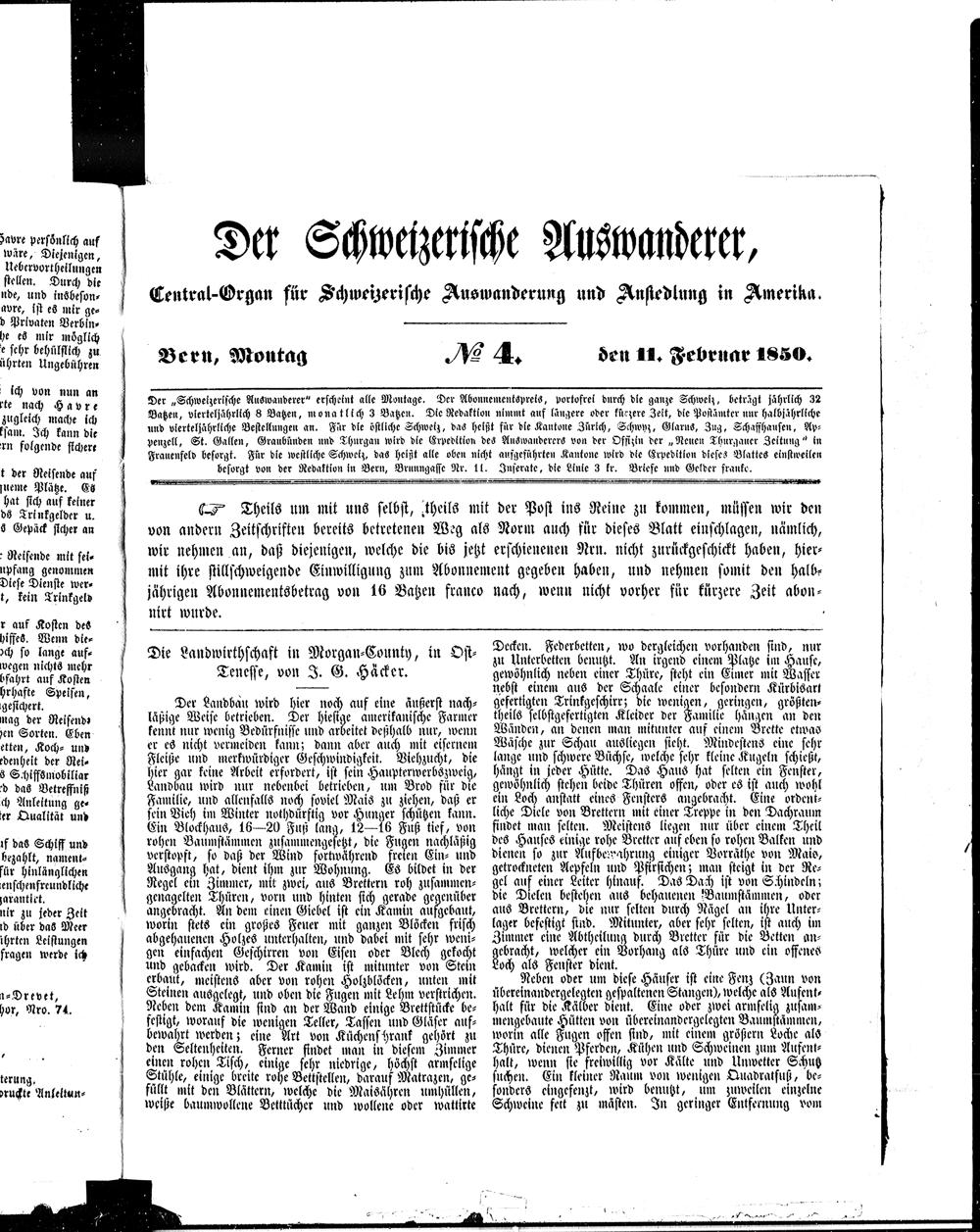 Der Schweizerische Auswanderer. 1850-1850