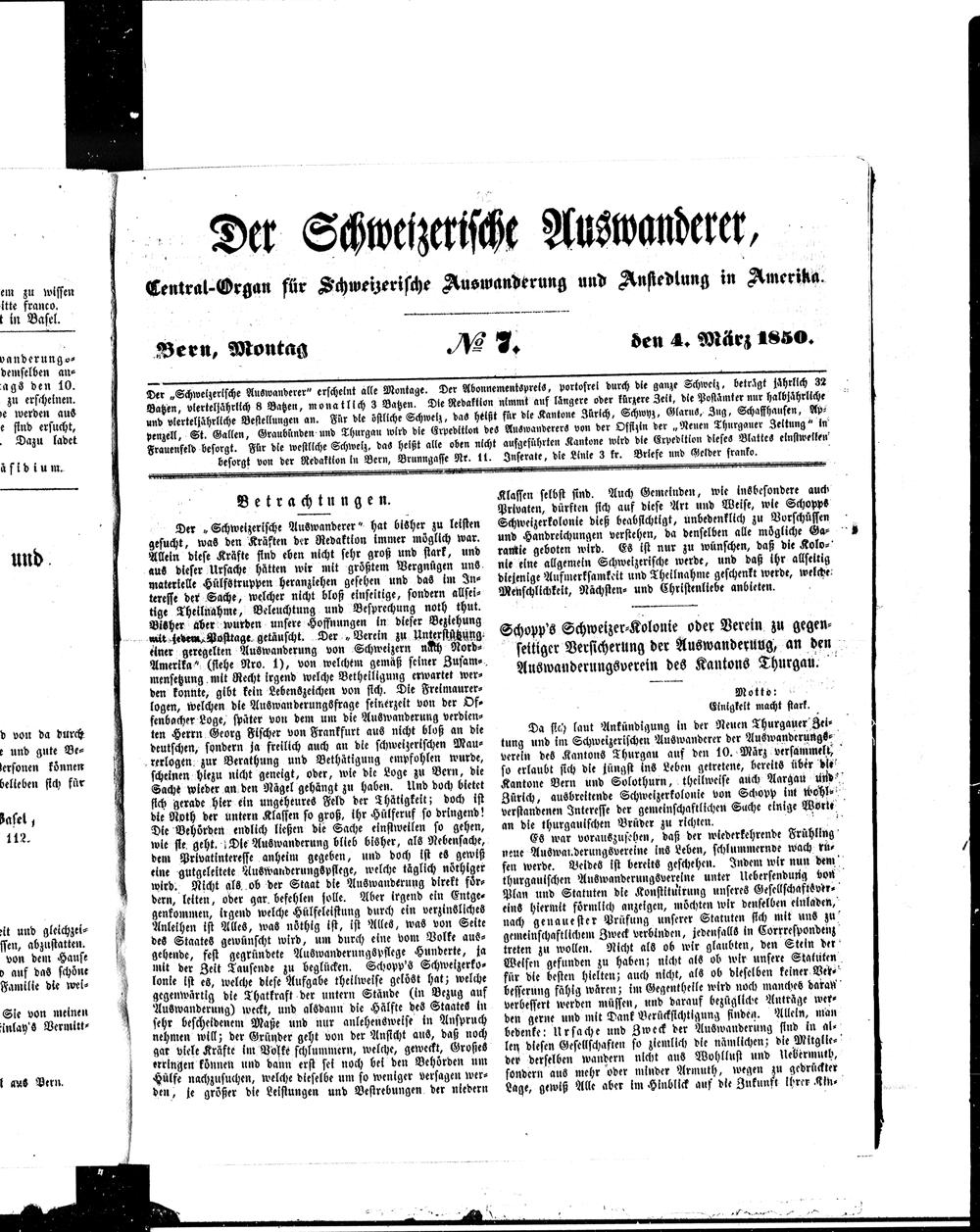 Der Schweizerische Auswanderer. 1850-1850
