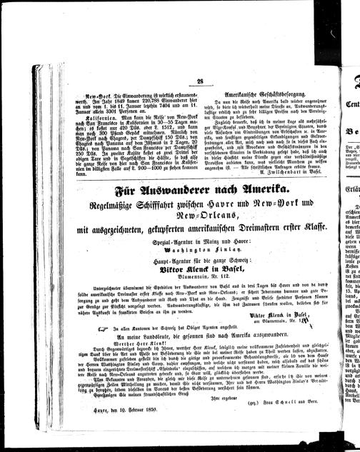 Der Schweizerische Auswanderer. 1850-1850
