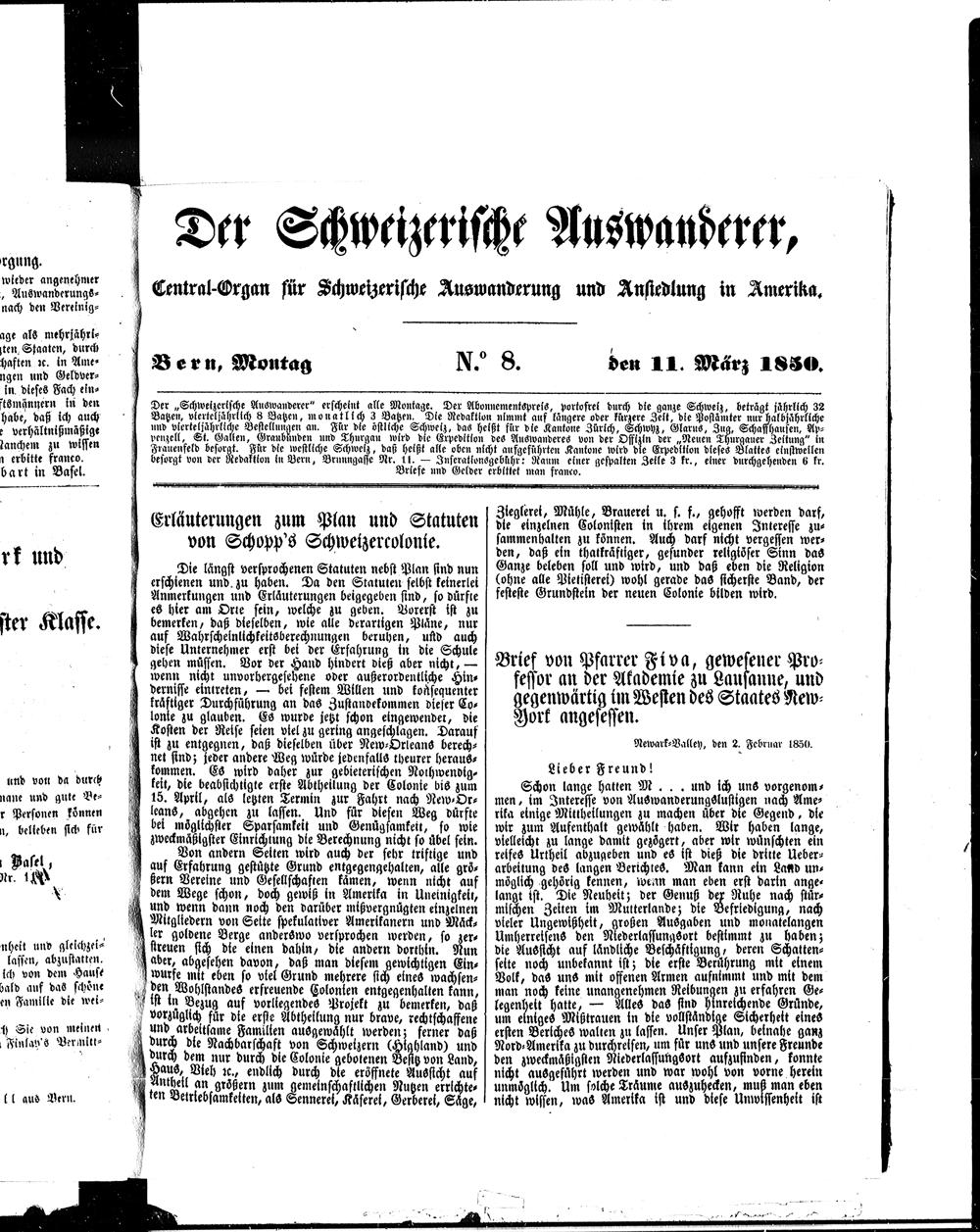 Der Schweizerische Auswanderer. 1850-1850