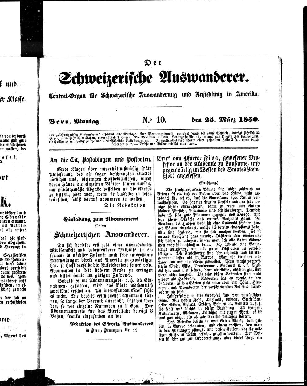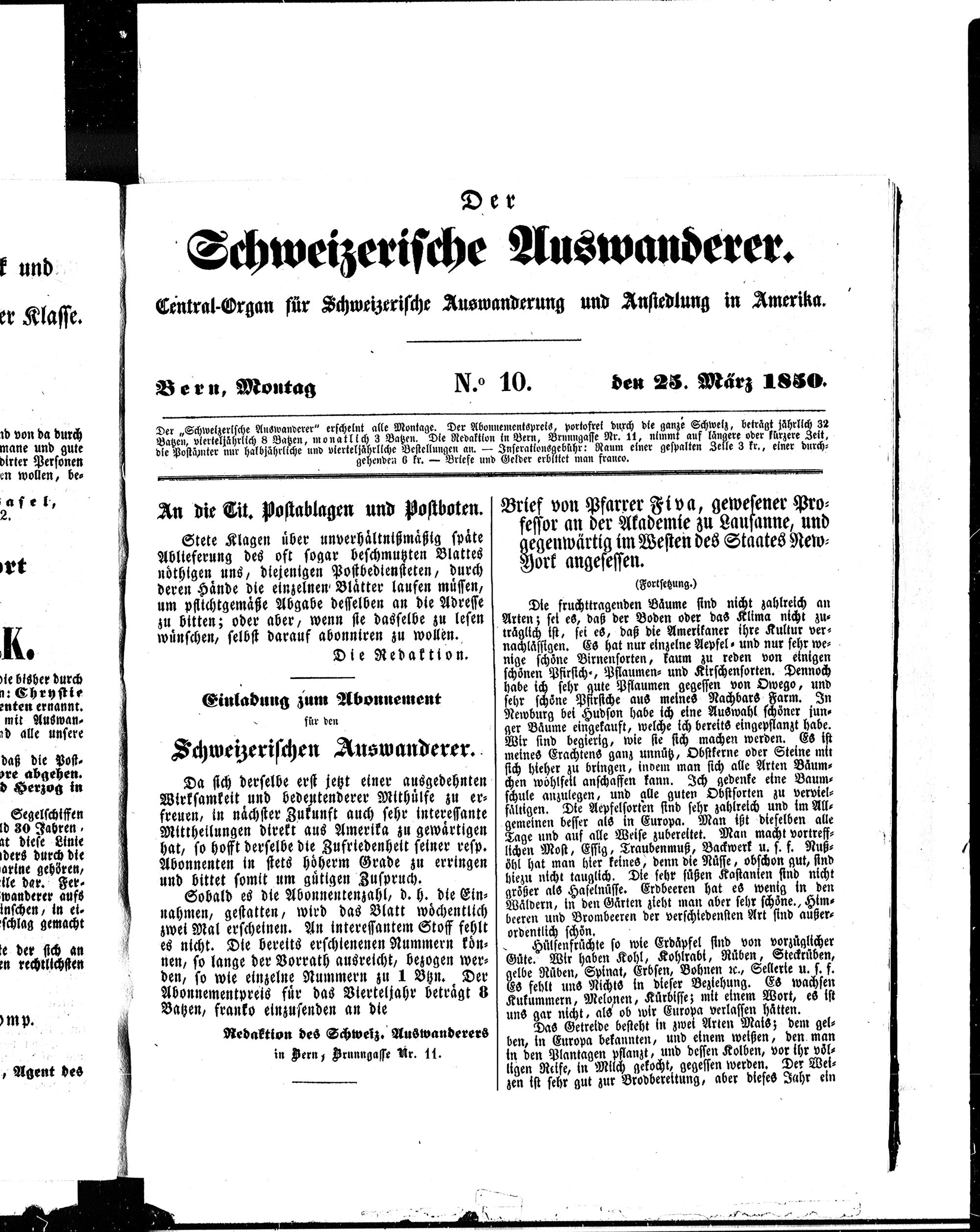 Der Schweizerische Auswanderer : Central-Organ für schweizerische Auswanderung und Ansiedlung in Amerika