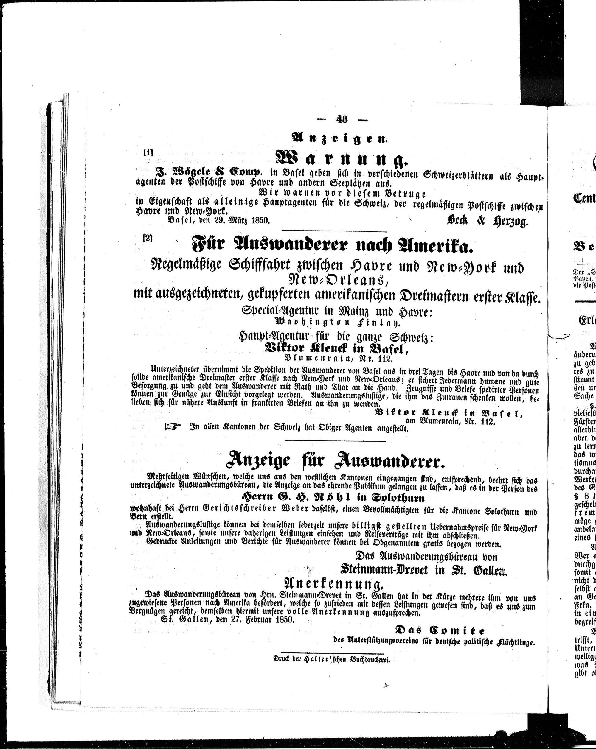 Der Schweizerische Auswanderer. 1850-1850
